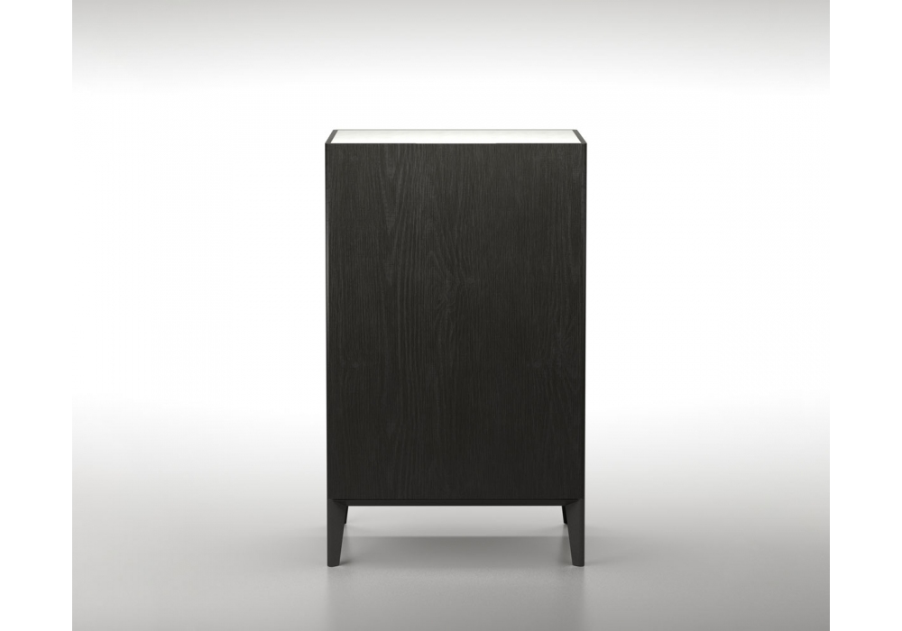 Dam von Marco Piva für Casamania & Horm entworfen, ist ein Aufbewahrungsschrank mit rechteckiger Form, mit Holztüren in verschiedenen Ausführungen und einer Klappöffnung, die in der Low-Version durch eine zentrale Schublade getrennt werden kann, die ein zusätzliches Behälterelement verbirgt. Das Metallteil folgt dem gesamten unteren Umfang des Schranks und endet in vier Füßen an den Außenecken. Die Schrankkollektion Dam wird durch weitere Elemente unterschiedlicher Größe bereichert, wie den Buffetschrank und den Barschrank.
