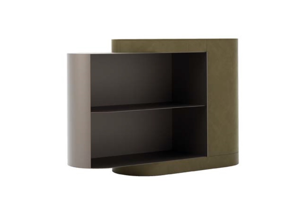 Blend von Federico Peri für Baxter entworfen, ist ein Schrank mit Struktur aus Birkensperrholz und MDF mit Lederbezug. Offenes Fach aus Material nach Wahl. Innenausstattung aus gebürsteter Eiche, gebeizt in verschiedenen Farbtönen. Die beiden Elemente, aus denen der Schrank besteht – das offene Bücherregal und die tragende Struktur – vereinen sich in einer Harmonie aus perfekt ausgewogenen Gewichten, aus Feststoffen und Leerräumen, die in ihrer Vereinigung die ideale Balance finden.