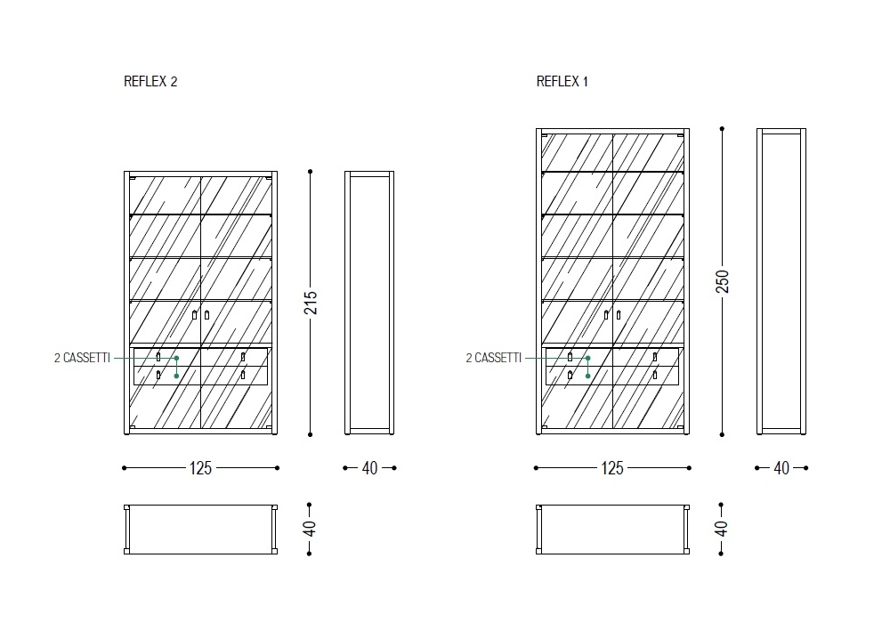 | Abmessungen | 125 x 40 x H 250 cm; 125 x 40 x H 215 cm. |