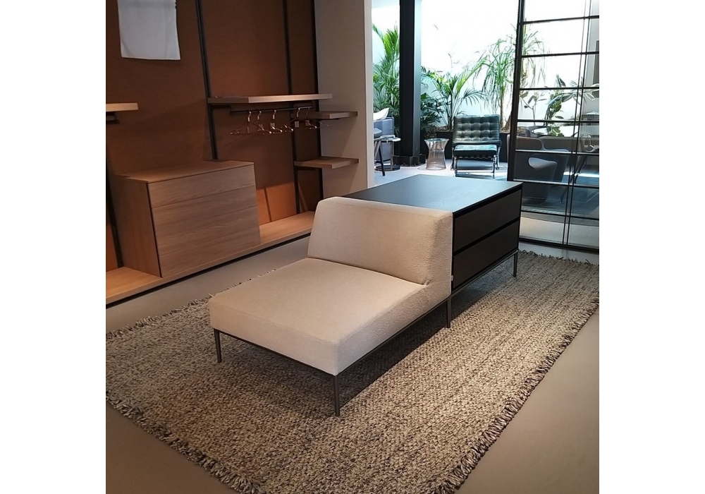Combi Cabinet Edition von Piero Lissoni für DePadova entworfen ist ein Aufbewahrungsmöbel mit Sitz. Die Füße und Querstreben sind aus flüssiglackiertem Aluminium in Messing oder brüniertem Messing mit verstellbarer Fußstütze. Die Struktur der Behälter besteht aus MDF, furniert in geräucherter Eiche, mit transparentem Lack auf Wasser- oder Lösungsmittelbasis. Die Oberseite des Aufbewahrungsmöbels besteht aus reflektierendem Glas, das in Kaffee oder Marmor hinterlackiert ist. Der Sitz ist mit Polyurethanschaum unterschiedlicher Dichte und Polyesterwatte gepolstert, die mit Polyestersamt gefüttert ist. Die Polsterung besteht aus abnehmbarem Stoff oder festem Leder. Combi Cabinet Edition ist in verschiedenen Ausführungen und Polsterungen erhältlich.