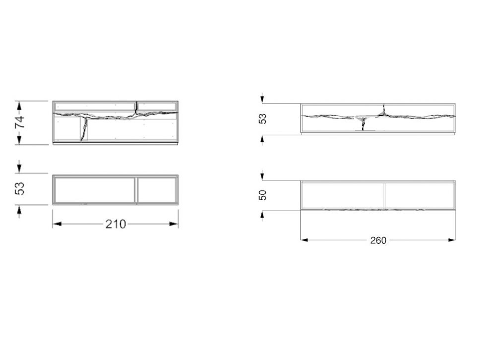 | Abmessungen | 210 x 53 x H 74 cm; 260 x 50 x H 53 cm. |