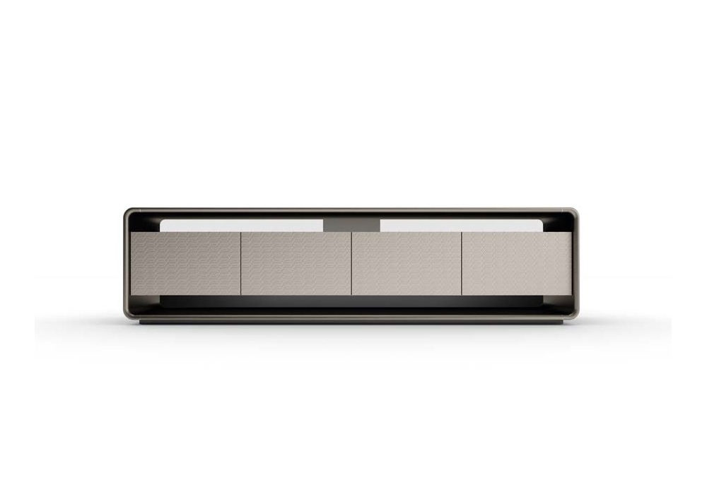 Oh von Tulczinsky für Reflex Angelo entworfen, ist ein Bahut mit geformter, lackierter Holzstruktur. 4 Hängetüren mit Push-Pull-Öffnung, mit Leder bezogen. Verfügbar in zwei Abmessungen.