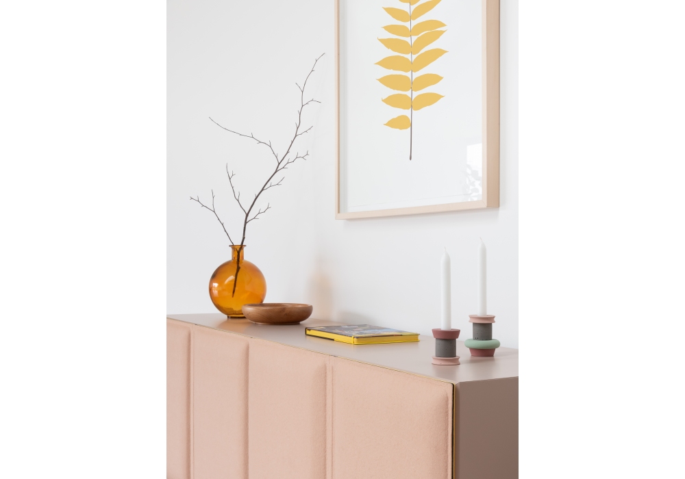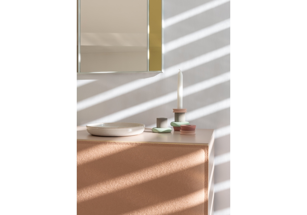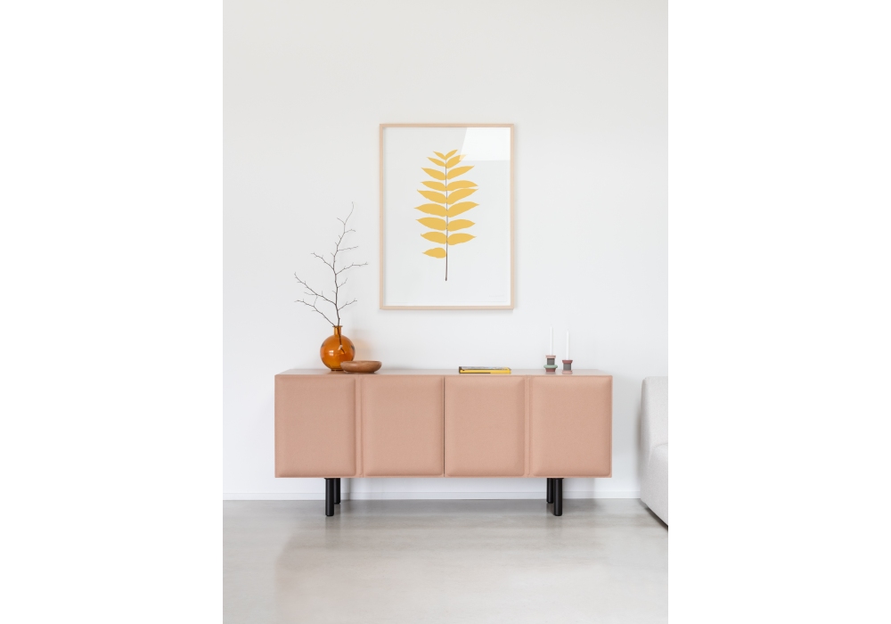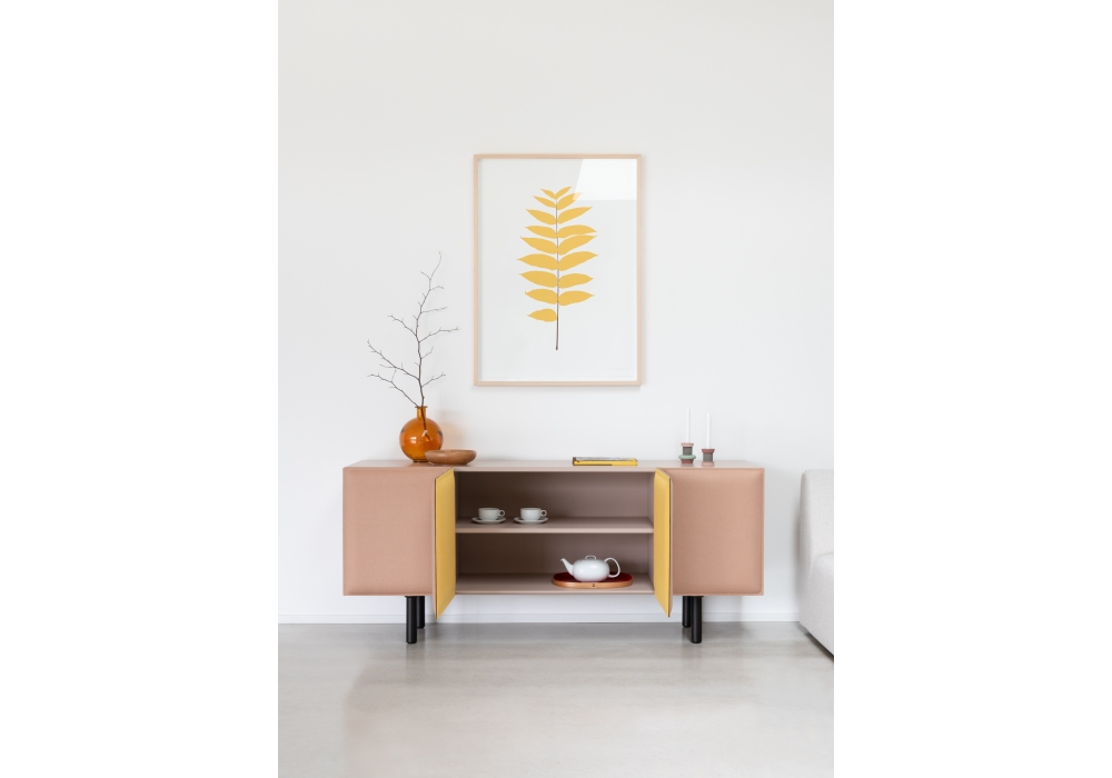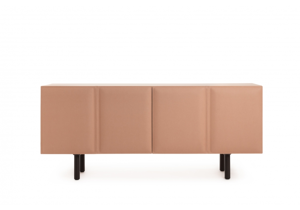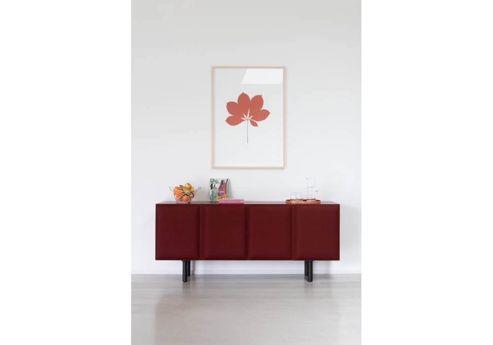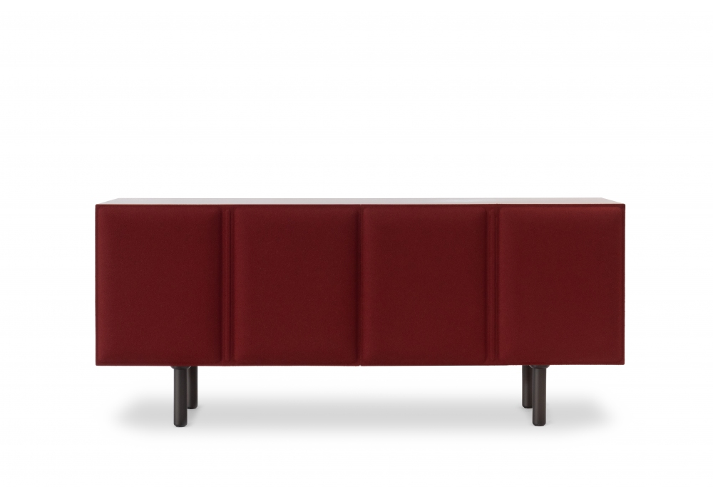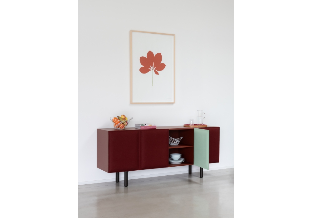Tacito von Alessandro Stabile für Magis entworfen, ist ein hohes Lagereinheit mit einer Struktur (Seiten, Rückseite und Regale) aus lackiertem MDF, Filztüren und Beinen aus eloxiertem Aluminium in dunkelbraunem Finish.