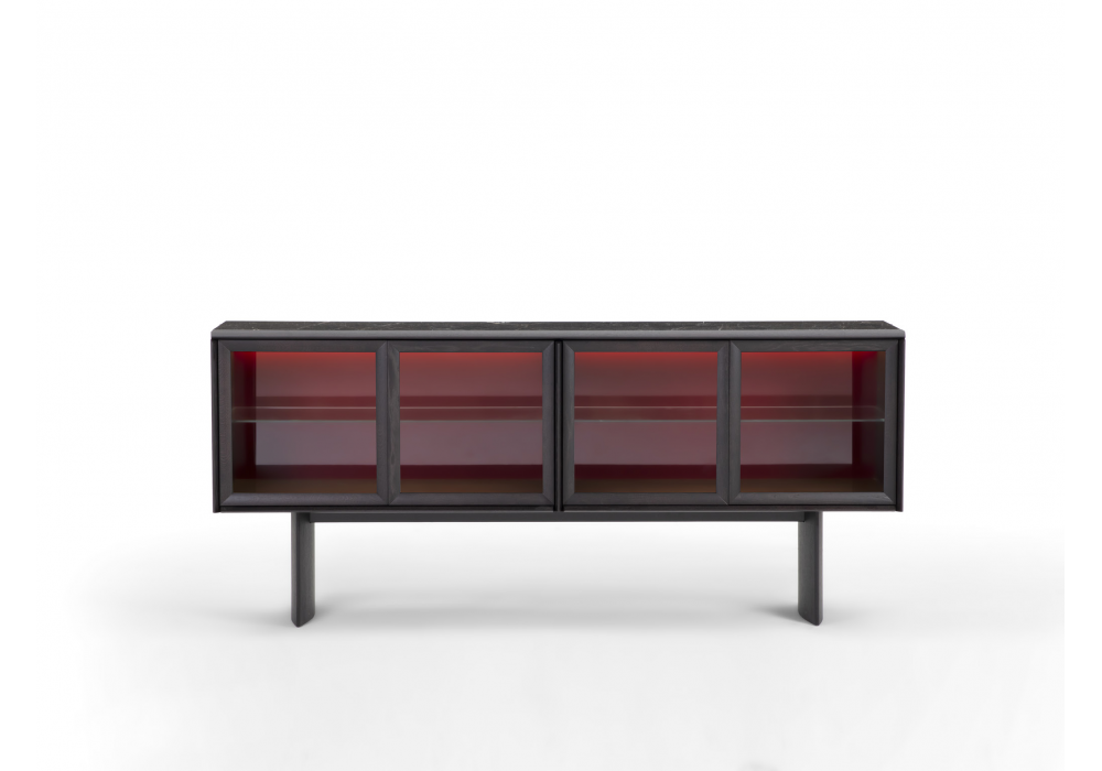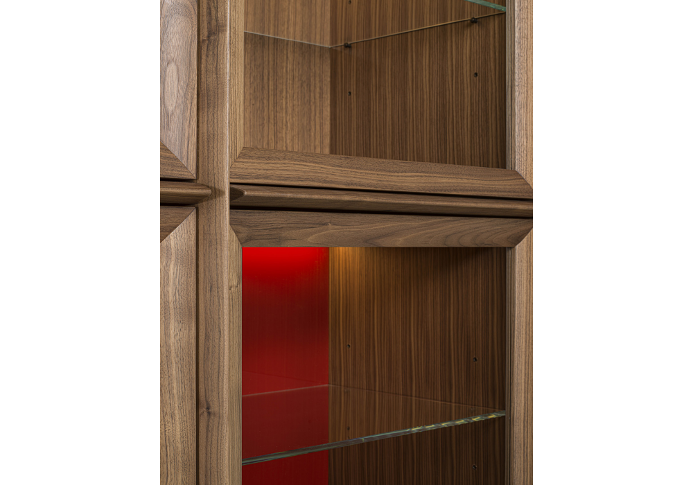 Pierre von Gabriele & Oscar Buratti für Porada entworfen, ist ein modulares System, erhältlich in 60 oder 120 cm breiten und bis zu 300 cm hohen Modulen aus Canaletta-Nussbaum oder Eiche. Die Struktur zeichnet sich durch das in die vertikalen und horizontalen Elemente integrierte Massivholzprofil sowie durch Türen aus Glas oder Holz aus. Der Innenraum lässt sich individuell gestalten mit LED-Beleuchtung, farblich passenden oder hochglanzlackierten Rückwänden, Regalböden aus Glas oder Holz und Arbeitsplatten aus Holz oder Marmor mit glänzender Schutzlackierung. Ergänzt werden kann das System durch TV-Paneele bis zu 85 Zoll, Wandregale und Holzunterschränke – für elegante und vielseitige Lösungen im Wohnbereich.