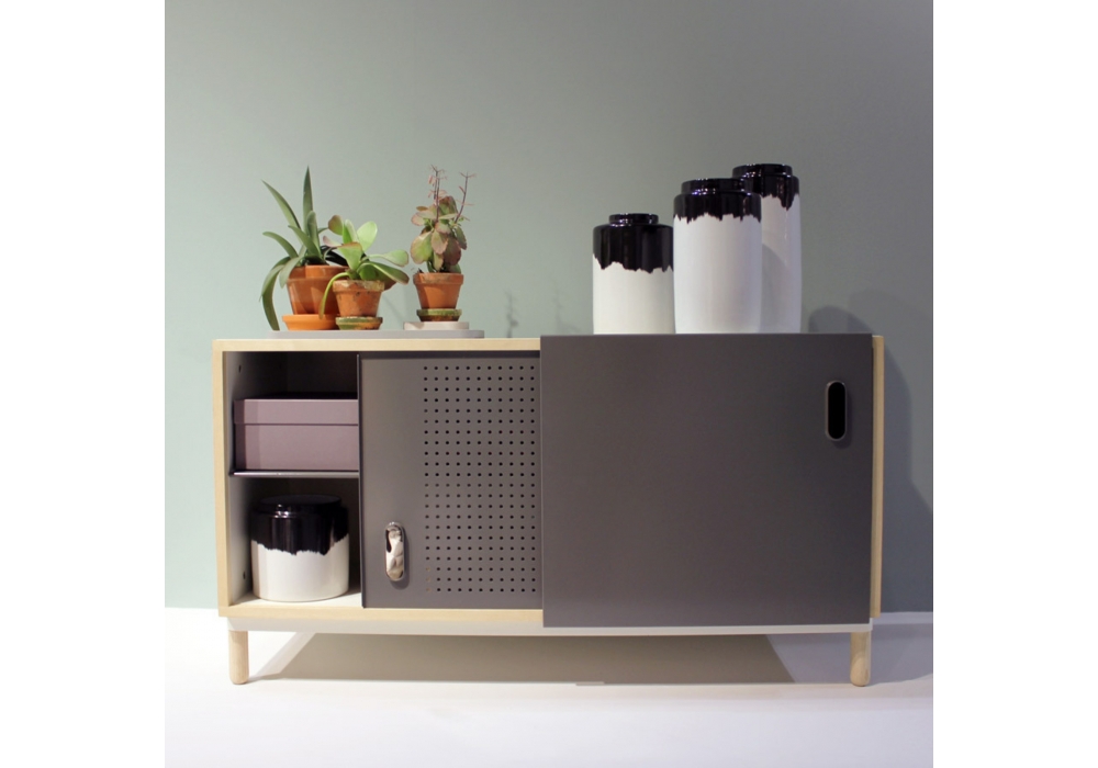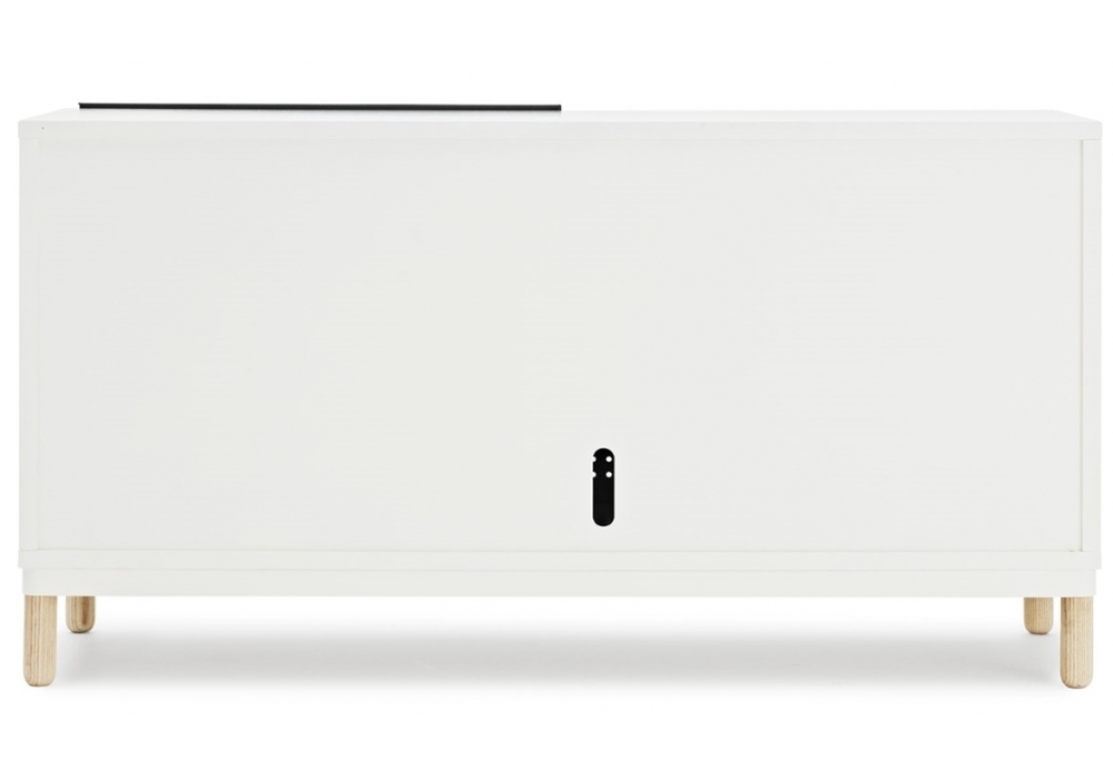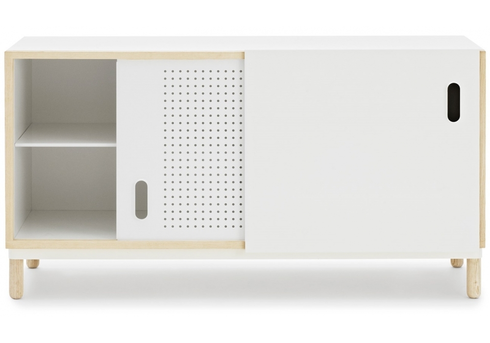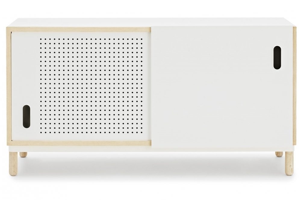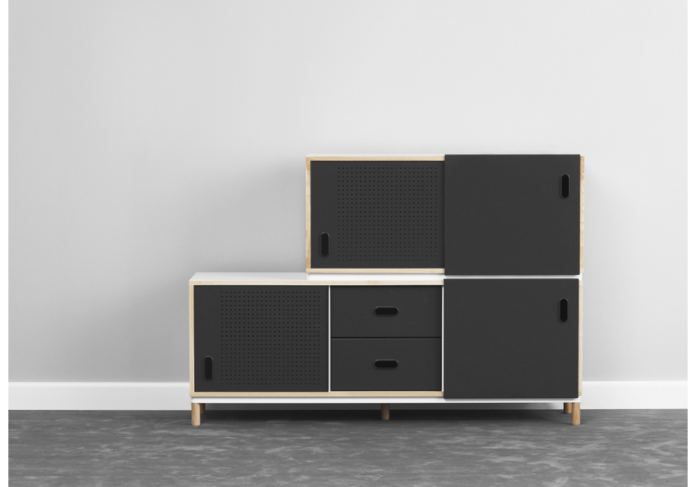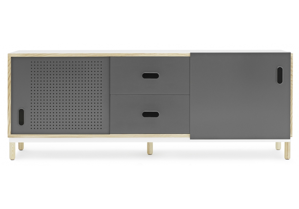Kabino, von Simon Legald für Normann Copenhagen entworfen, ist ein Sideboard mit viereckiger Struktur aus Eiche kombiniert mit MDF und Aluminium, erhältlich in grauen oder weißen Farben. Kabino ist in zwei verschiedenen Größen erhältlich.