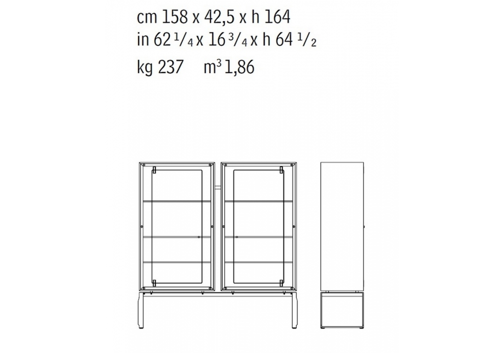 Aei von Chi Wing Lo für Giorgetti, ist eine Vitrine Möbel aus Canaletto-Walnuss, die aus zwei vertikalen Elementen besteht. Die Innenteile sind in zwei Ausführungen erhältlich: Sycomore frisè weiß gefärbt oder Blattgolddekoration. Die Türen, die Rückseite und die Regale sind aus gehärtetem Glas. Letztere werden dank einer mitgelieferten Fernbedienung durch LEDs mit Zündung beleuchtet. Die Scharniere, die Türgriffe und der Sockel sind aus bronzefarben lackiertem Metall.