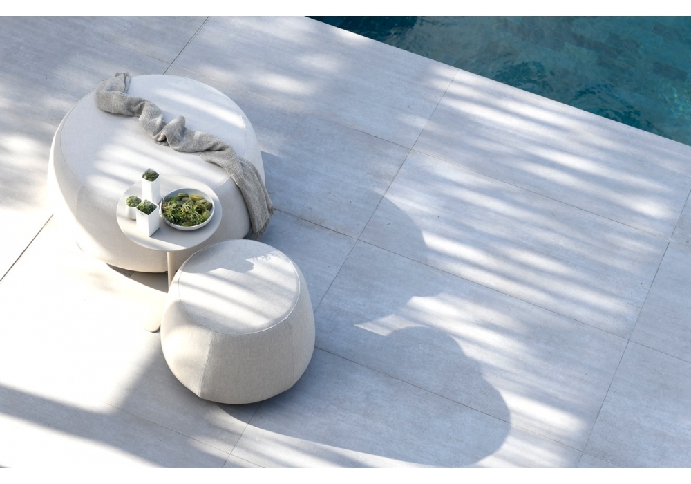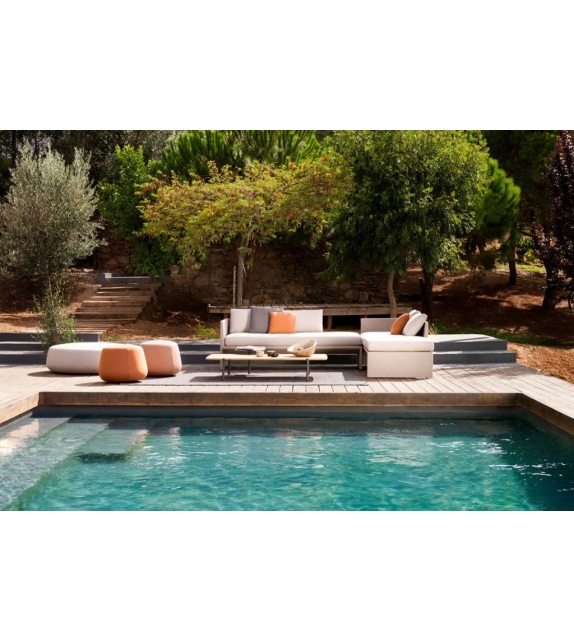 Nomad von Monica Armani für Tribù entworfen, ist ein wasserdichter Sitzpuff aus Polymer, der mit "dryfoam" und einem Outdoor-Stoff überzogen ist. Nomad ist verfügbar in drei Abmessungen, sodass sie auch in Kombination angenehme Kompositionen ergeben.