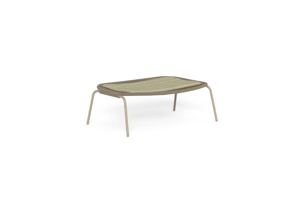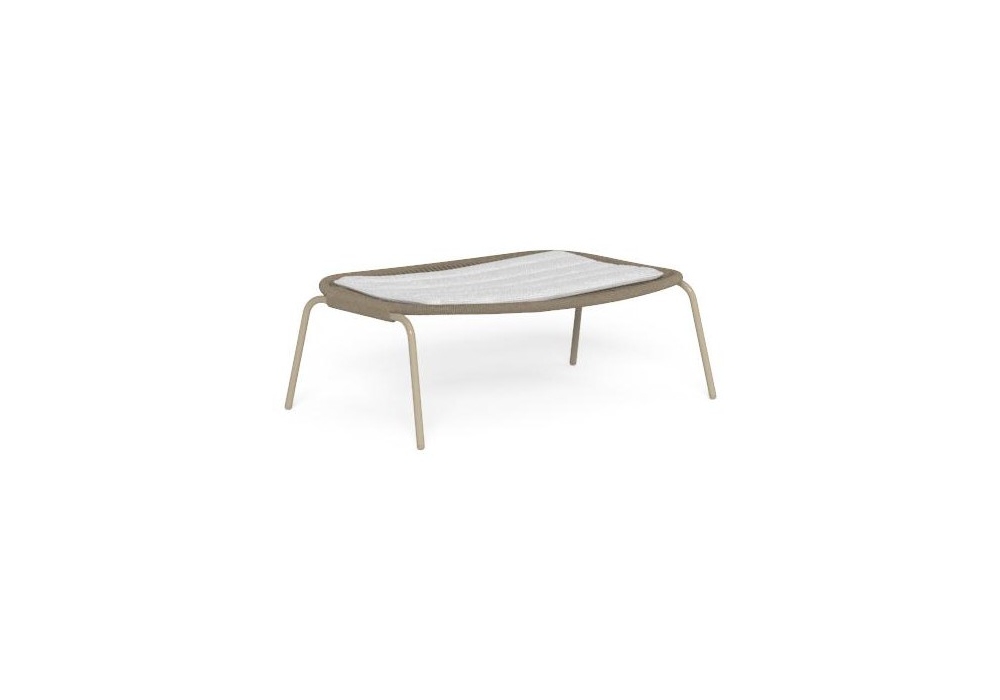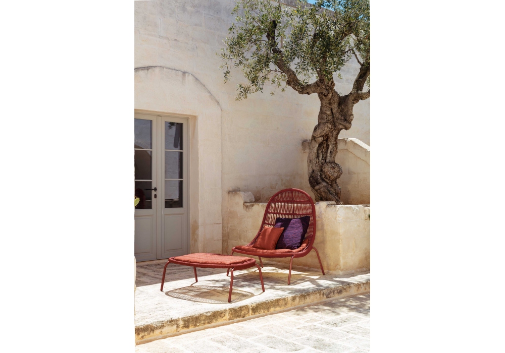 Panama, entworfen von Ludovica und Roberto Palomba für Talenti, ist ein Hocker mit Aluminiumstruktur und synthetischem Seeseil, erhältlich in verschiedenen Farben, Sitzkissen in verschiedenen Ausführungen.