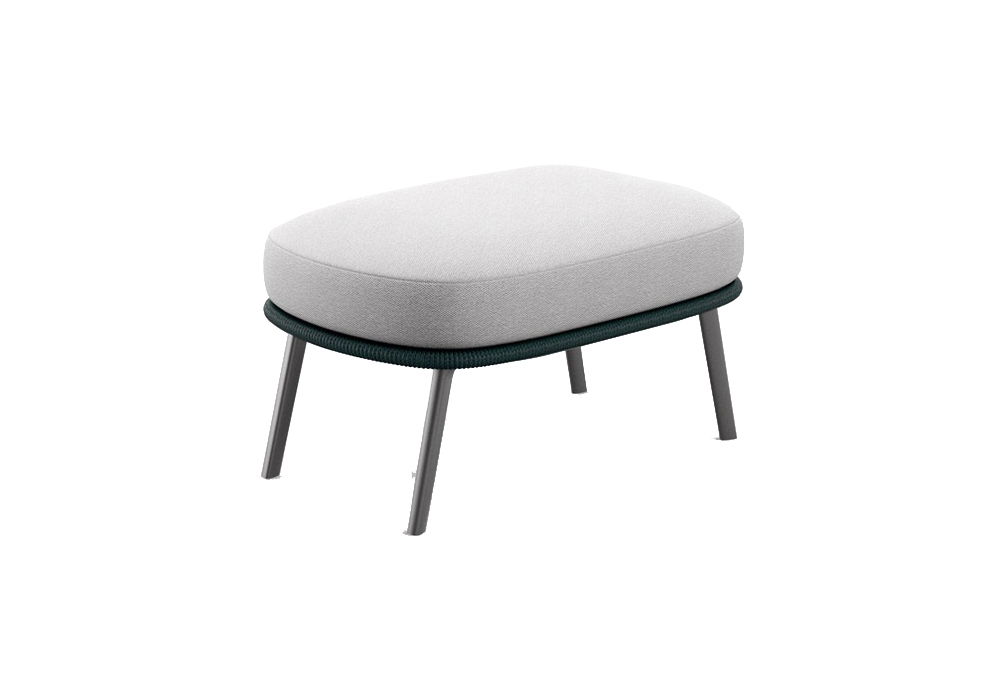 Rilly, entworfen von Gamfratesi für Dedon, ist ein Fußschemel. Anstelle der traditionellen Webtechnik werden parallele vertikale Stränge aus Seeseilen oder der neuen DEDON-Faser „Touch“ verwendet. Kissen in verschiedenen Ausführungen erhältlich.