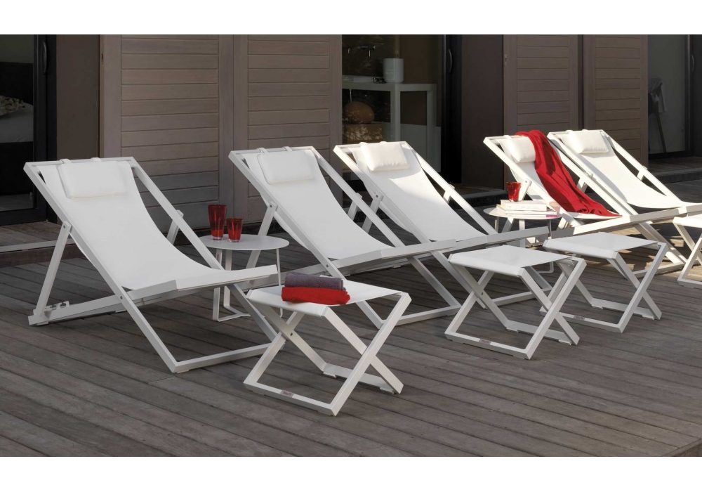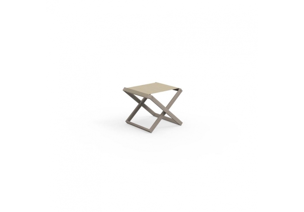 Touch für Talenti ist ein Hocker mit Aluminium- und Textilstruktur, der in drei Ausführungen erhältlich ist.