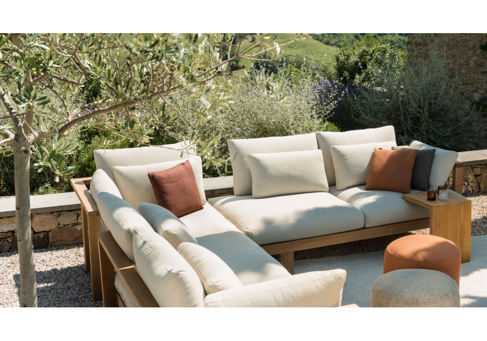 Poufs, entworfen und hergestellt von Tribù, ist ein Pouf, der in drei verschiedenen Größen erhältlich ist. Es hat eine sehr wetterfeste Polsterung und eine Außenbeschichtung, die mit verschiedenen Stoffen und Oberflächen hergestellt werden kann.