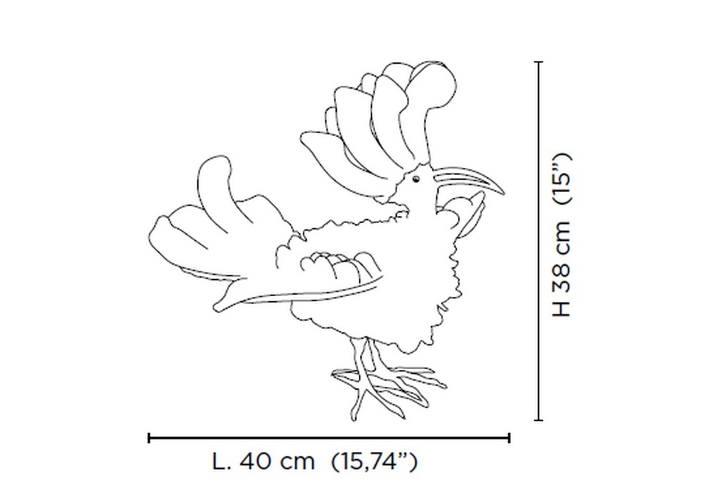 Upupa von Toni Zuccheri für Venini entworfen, ist eine Skulptur mit Bronzestruktur mit Glasfedern, die von Hand mit einer gemischten Technik modelliert wurden. Auflage nach Jahr nummeriert.