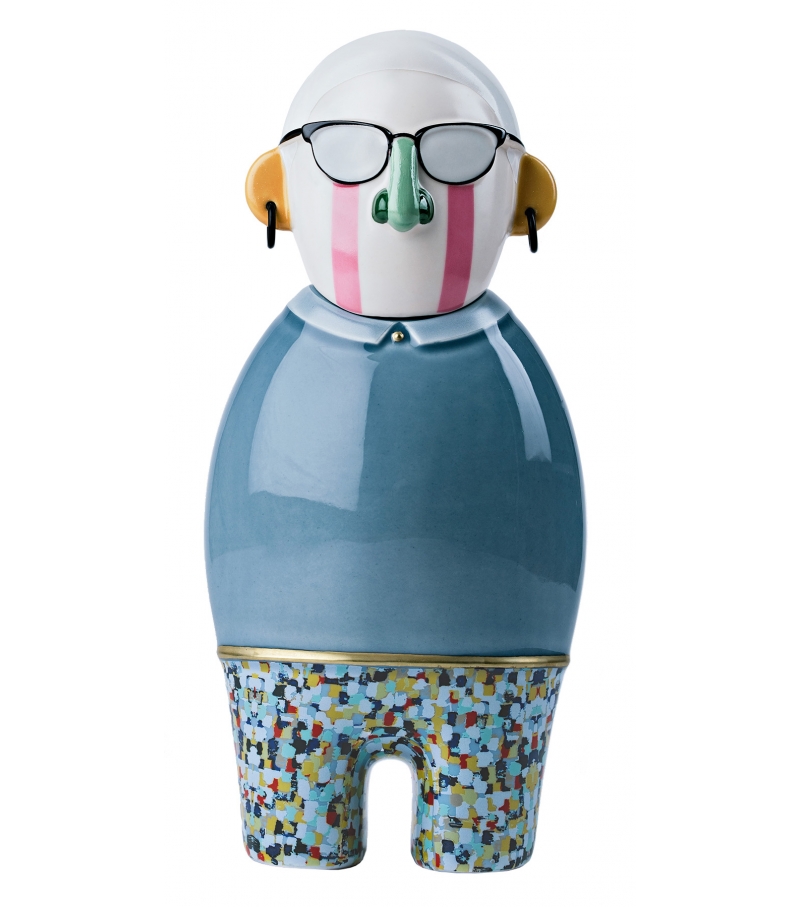 Most Illustrious Alessandro, von Elena Salmistraro für Bosa entworfen, ist eine Skulptur aus glasierter Keramik in hellblau. Most Illustrious ist eine Sammlung mit drei weiteren Skulpturen: Achille, Michele und Riccardo.