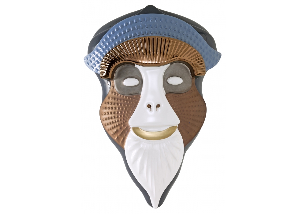Brazza, von Elena Salmistraro für Bosa entworfen, ist eine Skulptur aus Keramik angereichert mit Edelmetallen. Brazza ist Teil der Primates Masks Kollektion.