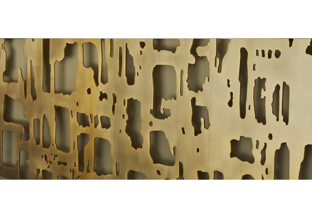 Intreccio, entworfen von Faravelli & Guadalupi für FG Art and Design, ist eine Eisenwandskulptur in satiniertem Gold.