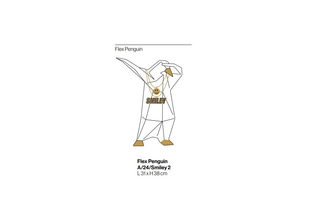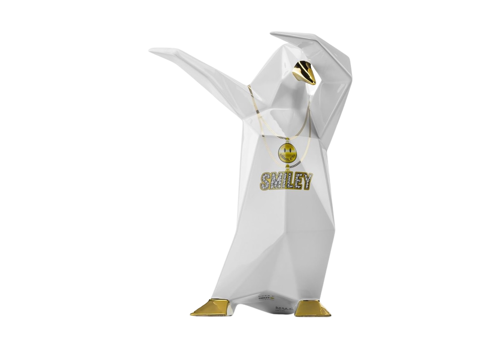 Flex Penguin von Vittorio Gennari für Bosa entworfen, ist eine Keramikskulptur mit Dekoration von Smiley Design Studio.