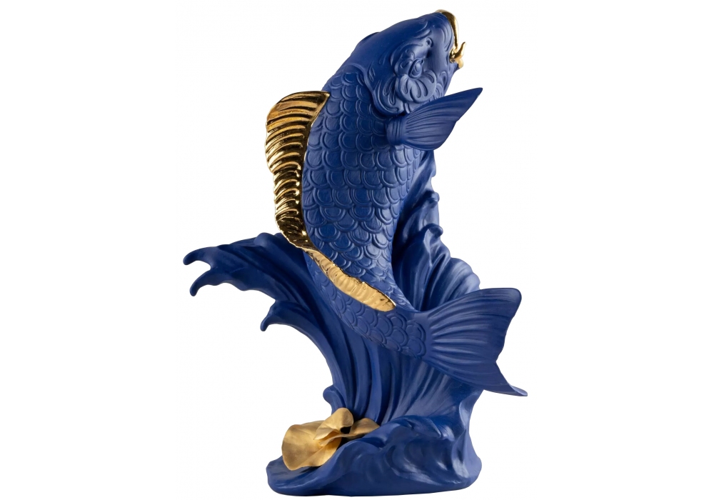 Carpe Koï, entworfen von Virginia González für Lladró, ist eine Porzellanskulptur in blau und gold Finish, die vollständig von den Lladró-Künstlern hergestellt und handbemalt wurde. Carpe Koï ist eine Skulptur in limitierter Auflage.
