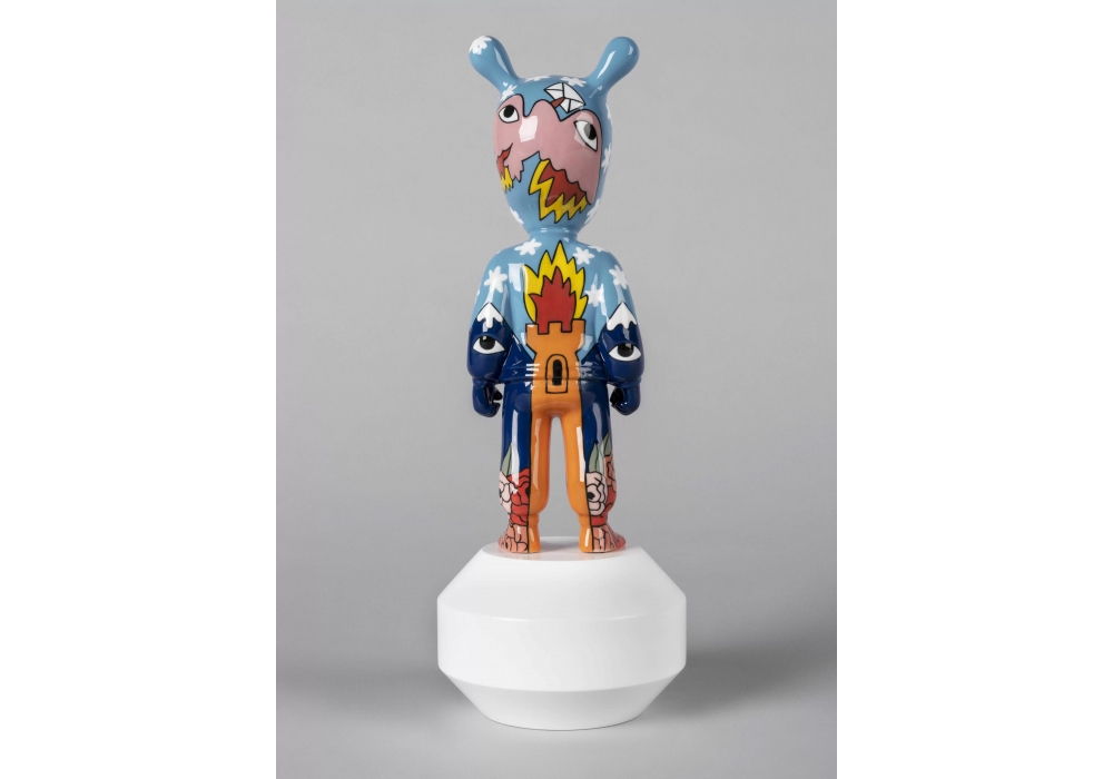 The Guest by Supakitch Little, von Raul Rubio geformt und von Ricardo Cavolo für Lladró signiert, ist eine Porzellanskulptur, die von den Lladró-Künstlern vollständig von Hand gefertigt und bemalt wurde.