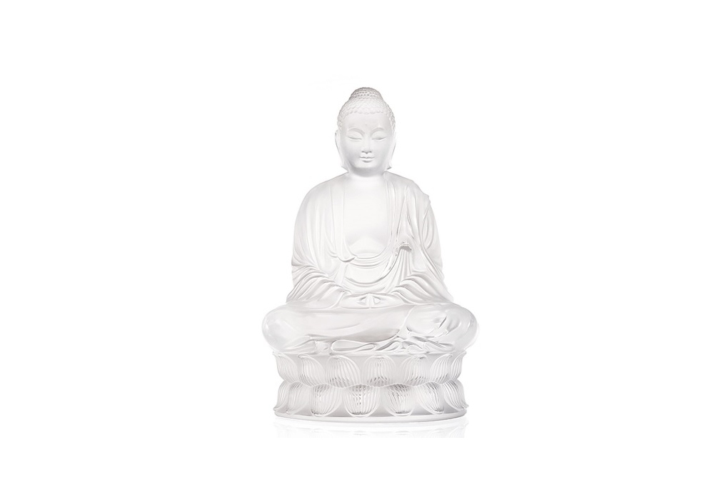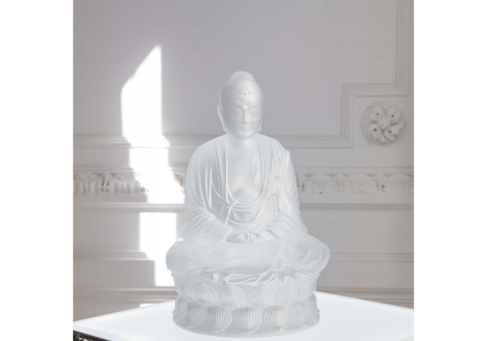 Small Buddha entworfen und hergestellt von Lalique, ist eine handgefertigte Skulptur aus neu poliertem Kristall mit satinierter Oberfläche. Verfügbar in zwei Ausführungen.
