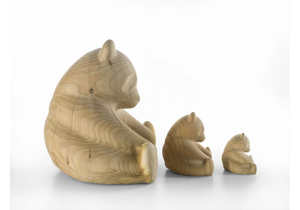 Panda von Setsu & Shinobu Ito für Riva 1920 entworfen, ist ein Einrichtungsgegenstand aus wiederverwendetem libanesischem Zedernholz aus kontrollierten und programmierten Schnitten. Verfügbar in mehreren Abmessungen.