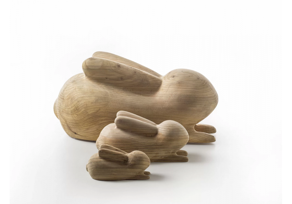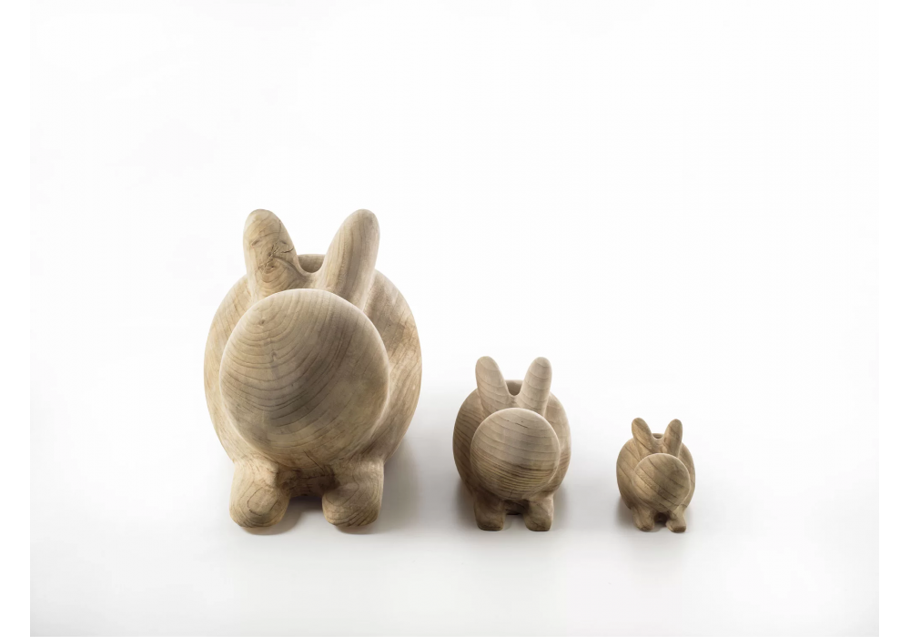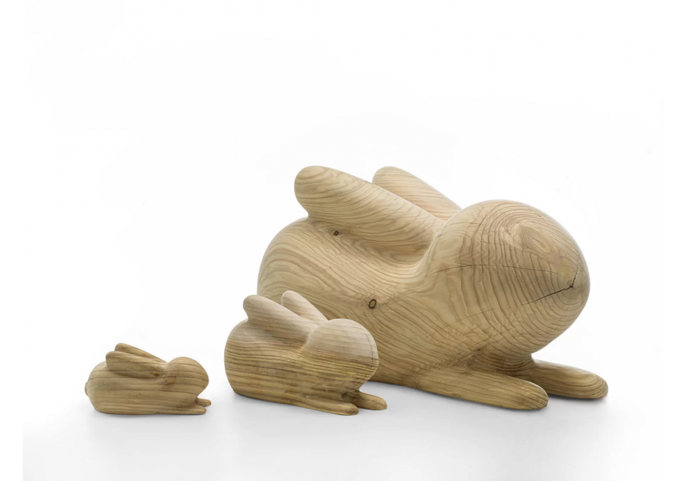 Usako von Setsu & Shinobu Ito für Riva 1920 entworfen, ist ein Einrichtungsgegenstand aus massivem libanesischem Duft-Zedernholz, das aus einem einzigen Block gearbeitet wurde und dessen skulpturales Design von einem Kaninchen inspiriert ist. Verfügbar in mehreren Abmessungen.