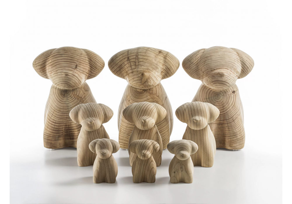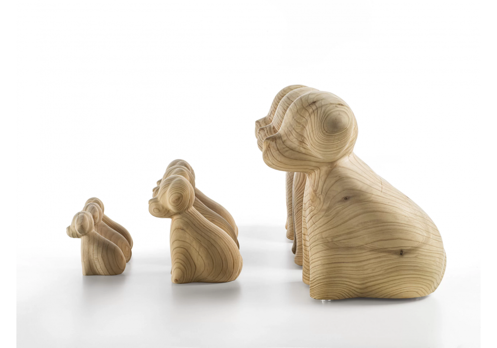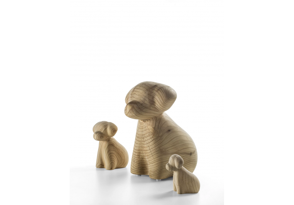 Wan von Setsu & Shinobu Ito für Riva 1920 entworfen, ist ein Einrichtungsgegenstand aus massivem duftendem Zedernholz, der aus einem einzigen Block gearbeitet wurde, dessen skulpturales Design von einem Hund der Rasse Malteser inspiriert ist. Verfügbar in mehreren Abmessungen.