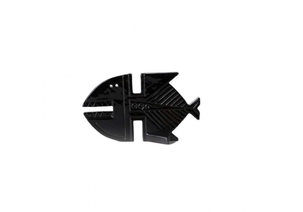 Pesce Palla von Aldo Londi für Bitossi Ceramiche entworfen, ist eine handgefertigte Skulptur, die mit einer Presse aus weißem Ton gegossen und mit glänzender schwarzer oder weißer Glasur bemalt wurde.