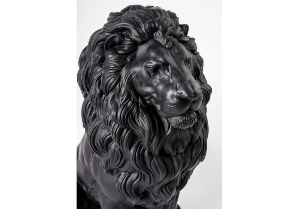 Majestic Lion von Raul Rubio für Lladró signiert und eine Skulptur aus mattschwarzem Porzellan.