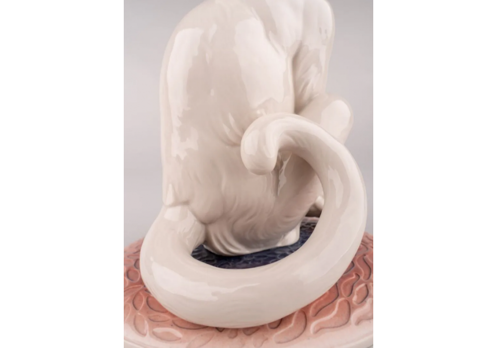 Little Monkey von Virginia González für Lladró entworfen , ist eine Skulptur aus glasiertem Porzellan, verziert mit sanften Tönen und goldenen Details.