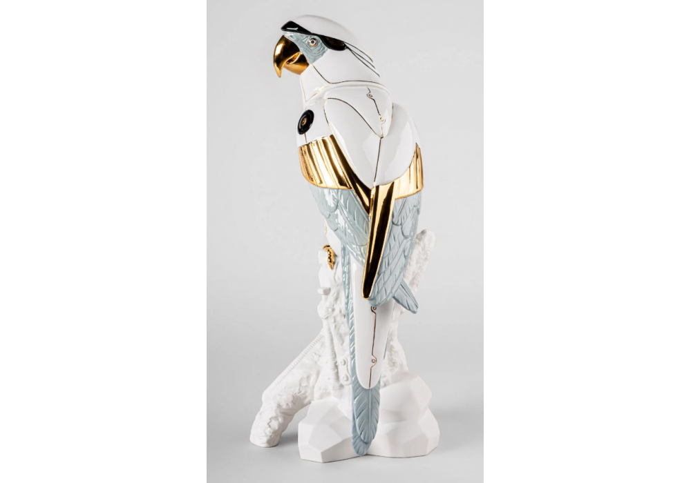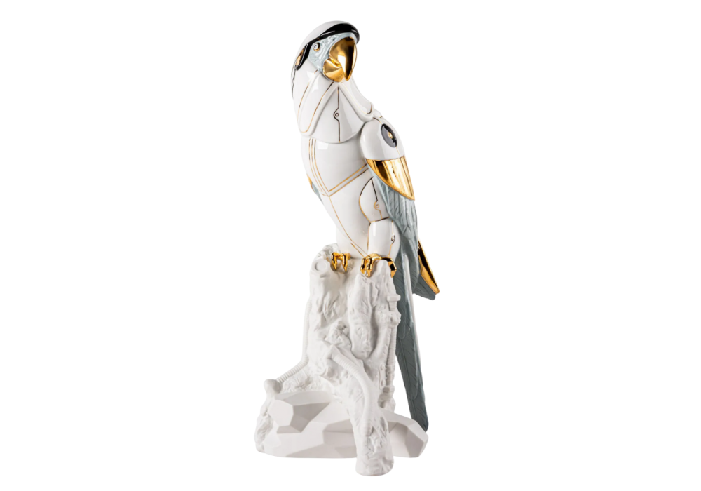 Ara Cyborg von Joan Coderch für Lladró entworfen, ist eine glänzende Porzellanskulptur, die vollständig von den Lladró-Künstlern hergestellt und handbemalt wurde.