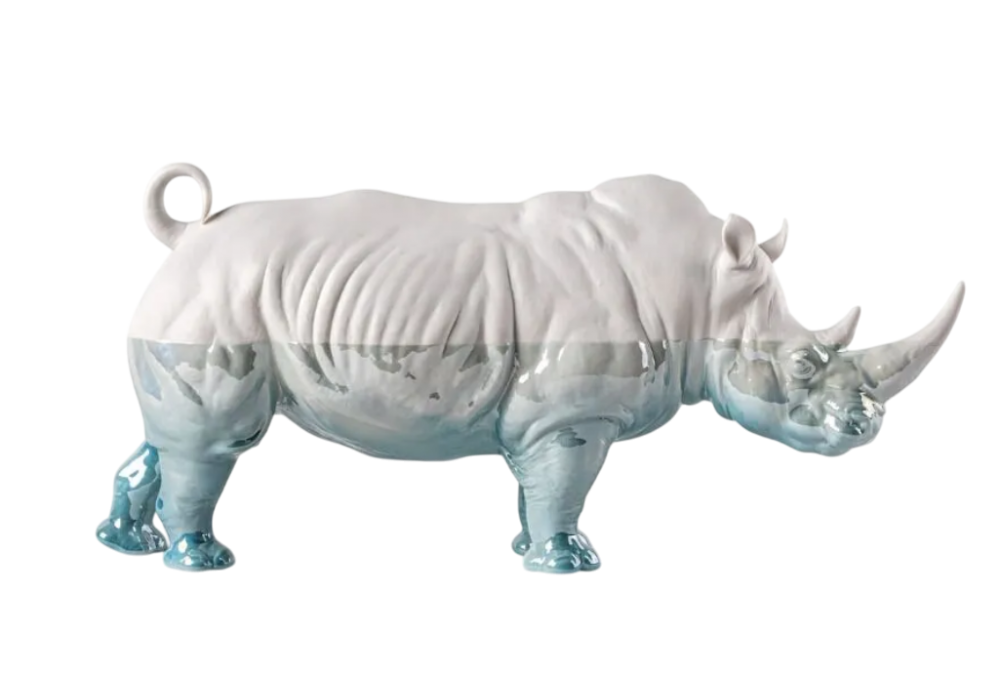 Rhino Underwater von Ernest Massuet für Lladró ist eine Porzellanskulptur in glänzender und matter Ausführung, die vollständig von den Lladró-Künstlern gefertigt und handbemalt wurde.