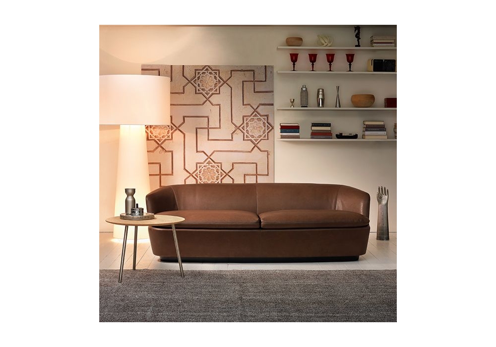 Orla von Jasper Morrison Cappellini entworfen, ist ein 2-Sitzer-Sofa aus Polyurethanschaum unterschiedlicher Dichte und Faserpolsterung, Untergestell aus mitteldichtem Holzkonglomerat und fester Bezug aus Stoff oder Leder.