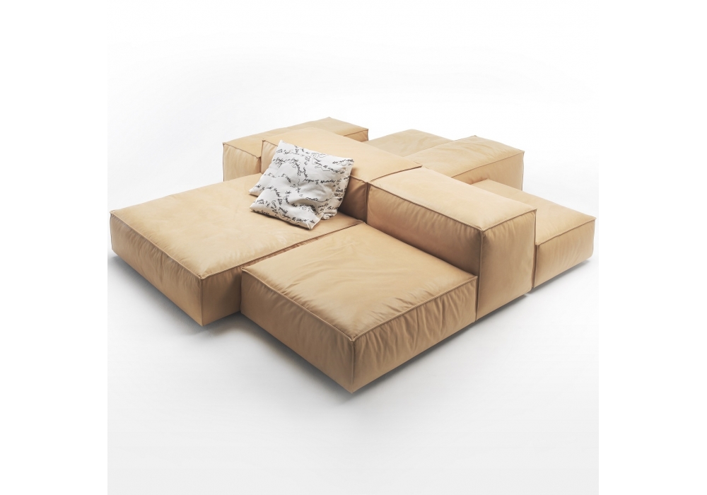 Extrasoft designed by Piero Lissoni for Living Divani is a modular sofa with a casual aspect and a soft, more yielding and malleable comfort. Cosy and restful seats which can be placed next to each other in a geometrical configuration, but with irregular contours. Frame in double-paneled poplar and pine. Support in cross-woven coated rubber elastic straps. Padding in differentiated density polyurethane foam covered with a quilted mat in prewashed and sterilized goose down, stitched into separate compartments or, on request, padding in differentiated density polyurethane foam and Visco-soft “Xtra-pur”, covered with acrylic fibre layers. Fabric or leather upholstery.