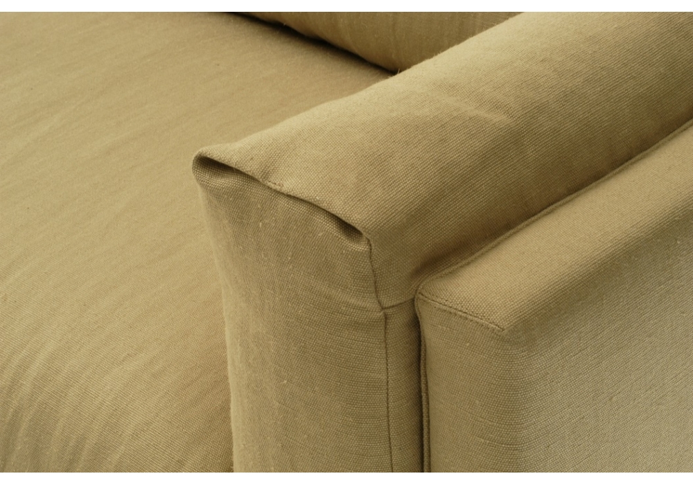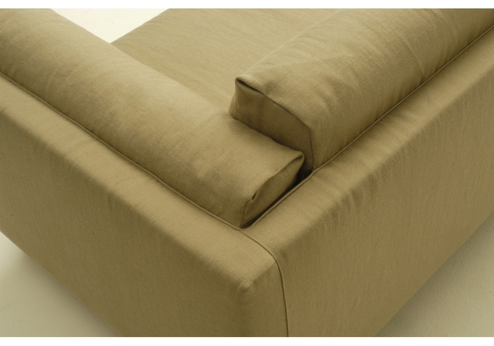 The special feature of the understated, discreet Family Life sofa designed by Piero Lissoni for Living Divani is to be found in the design details: a seam which runs around most of its edge is the secret to its elegance. Fix or modular sofa with one-piece frame in double-paneled poplar and pine. Steel seat chassis with support in cross-woven, coated rubber elastic straps. Shell padding in differentiated density polyurethane foam. Covering in needle punched, resinated, non-woven polyester fibre, bonded onto a polyamide velveteen backing. Seat, back and armrest cushions in prewashed and sterilized goose down, stitched into separate compartments, with preformed polyurethane foam insert, or in differentiated density polyurethane foam, coated with acrylic fibre layers. Steel feet, with satin nickel finish joined by a bracket. Fabric or leather upholstery. The fabric version only is fully removable by zippers and Velcro fastenings. The leather version is always with non-removable upholstery. Seat depth 62cm.