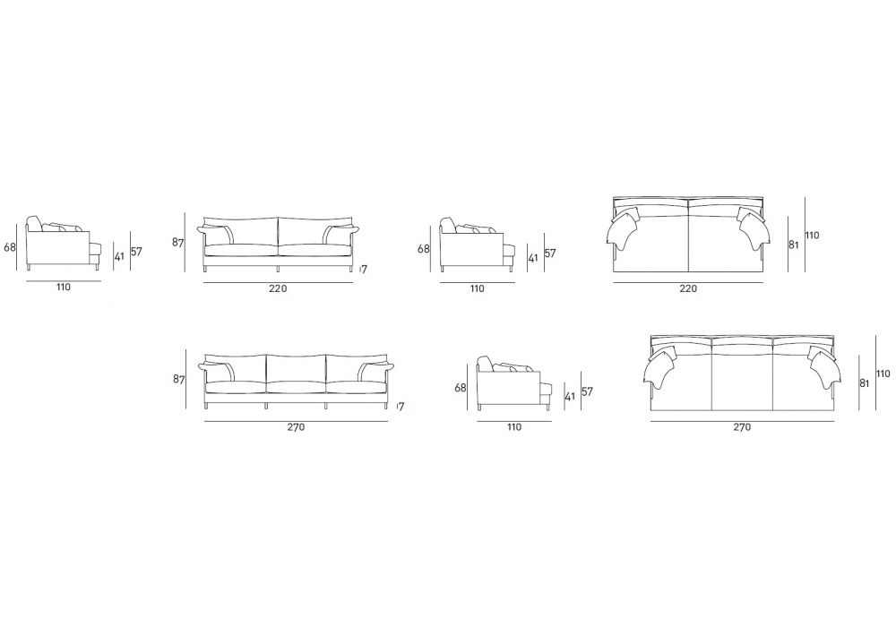 Soft and inviting, Chemise, designed by Piero Lissoni for Living Divani, surrounds with its warm sensuality. The soft cushions provide the maximum comfort for a total relaxation. Sofa with supporting frame in lacquered drawn tubular steel. Feet in AISI 304 stainless steel with matt satin-finish, on request available in natural or ebony-dyed oak. Fabric or leather upholstery, both fully removable by zippers and Velcro fastenings. Standard flounce 7cm from the floor for fabric upholstery only. The leather version is always without flounce. Seat depth 61-81cm.