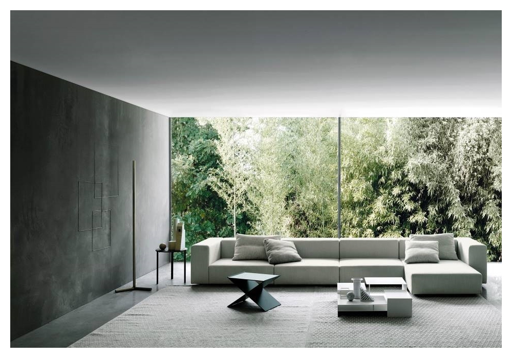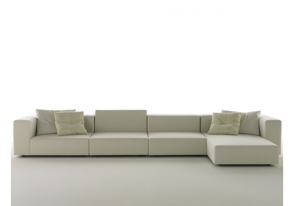 The Wall sofa designed by Piero Lissoni for Living Divani has a distinctive, regimented style featuring a square design and prominent corners. The seats, backs and arms of Wall are innovatively dimensioned and form the elements that can be freely mixed and matched to shape and outline the product. Modular elements with frame in double-paneled poplar and pine. Support in cross-woven, coated rubber elastic straps. Padding in differentiated density polyurethane foam. Covering in needle punched, resinated, nonwoven polyester fibre, bonded onto a polyamide velveteen backing. Black adjustable PVC feet (Wall). Fabric or leather upholstery. The fabric version only is fully removable by Velcro fastenings. The various elements are joined together by means of hooks. Seat depth 68-94cm.