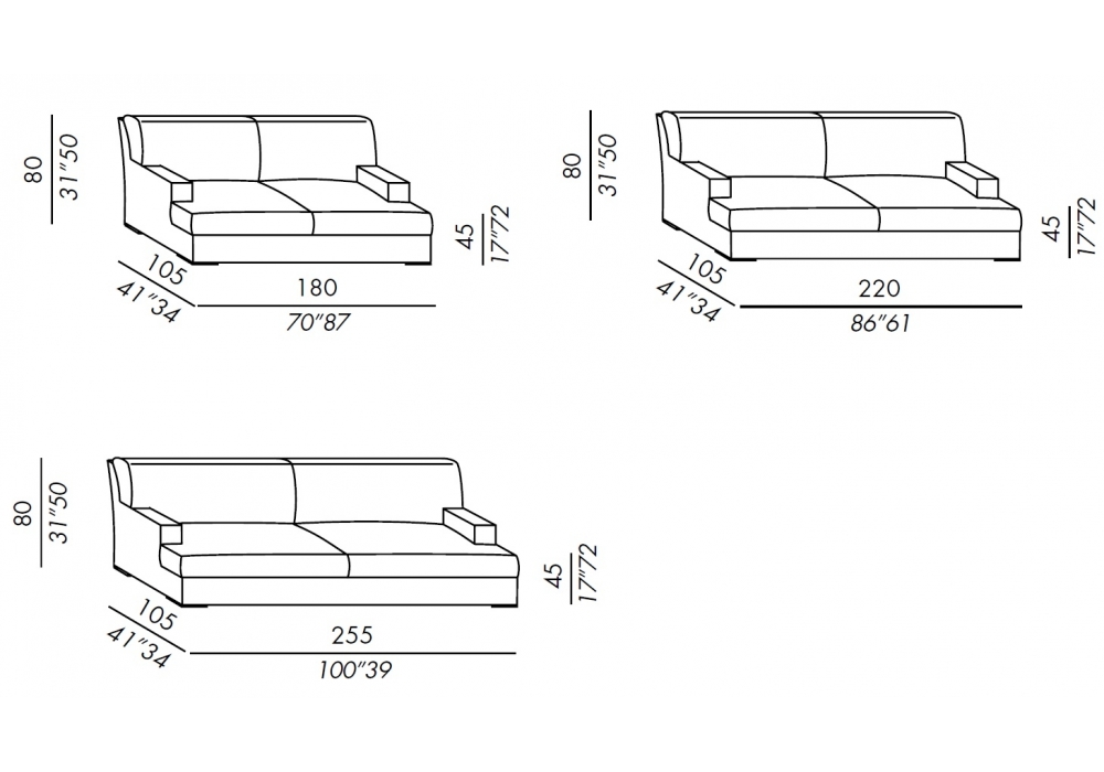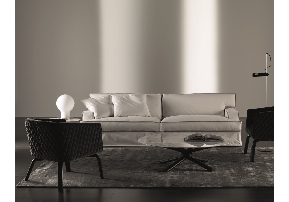 James designed by Andrea Parisio for Meridiani is a sofa with wooden frame and non-deformable polyurethane padding. Upholstery available in fabric or leather. Realized in different sizes with possibility of modular configurations.