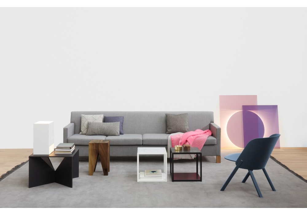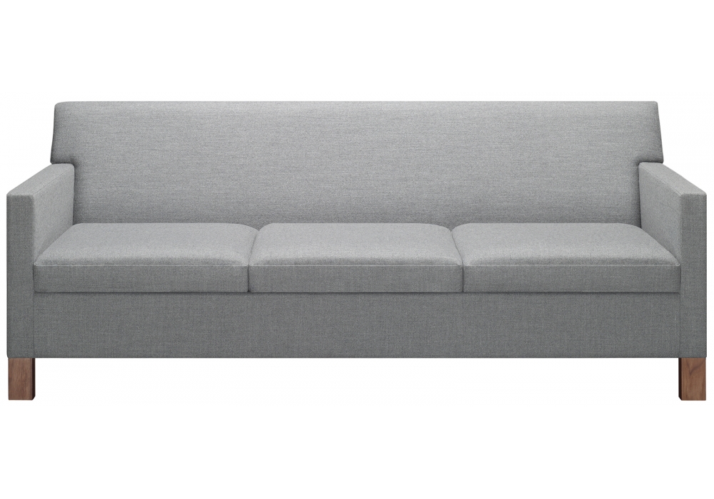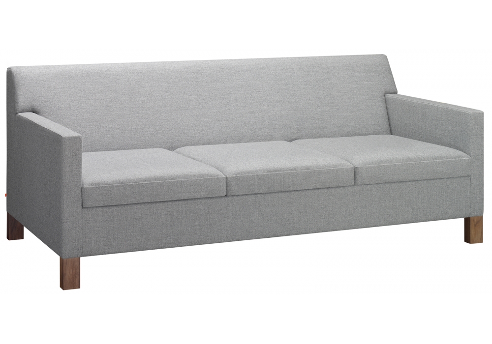 FK09 Westhausen von Ferdinand Kramer für E15 entworfen, ist ein Sofa verfügbar mit massiver Eiche oder Nussbaum Beine und Bezug in Stoff oder in Leder. Die Gradlinigkeit des Entwurfs und Großzügigkeit der Abmessungen des gepolsterten Sofas vermitteln einen ruhigen und einladenden Charme und erlauben so Anwendung in unterschiedlichsten Räumen.