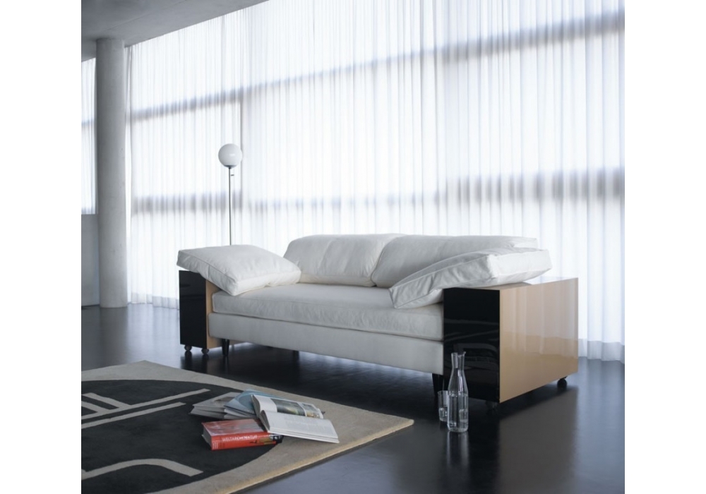 Lota von Eileen Gray für ClassiCon entworfen, ist ein schönes Sofa mit Gepolsteter Buchenrahmen mit Federkorb. Loses Sitzkissen mit Naturfederfüllung. Lose Rücken- und Seitenkissen mit Naturfedern und Stabilisatoren gefüllt. Seitenboxen auf Rollen aus MDF hochglanzlackiert. Vorder - und Rückseite immer schwarz. Bezug aus Stoff oder Leder.