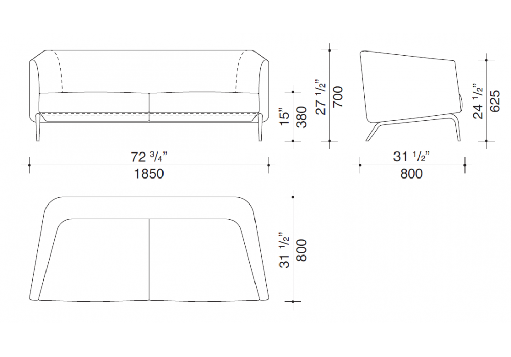 Kaiwa von Matteo Nunziati für Lema entworfen ist ein Sofa mit einer bronzefarben lackierten Metallstruktur und Stoff- oder Lederpolsterung in verschiedenen Ausführungen.
