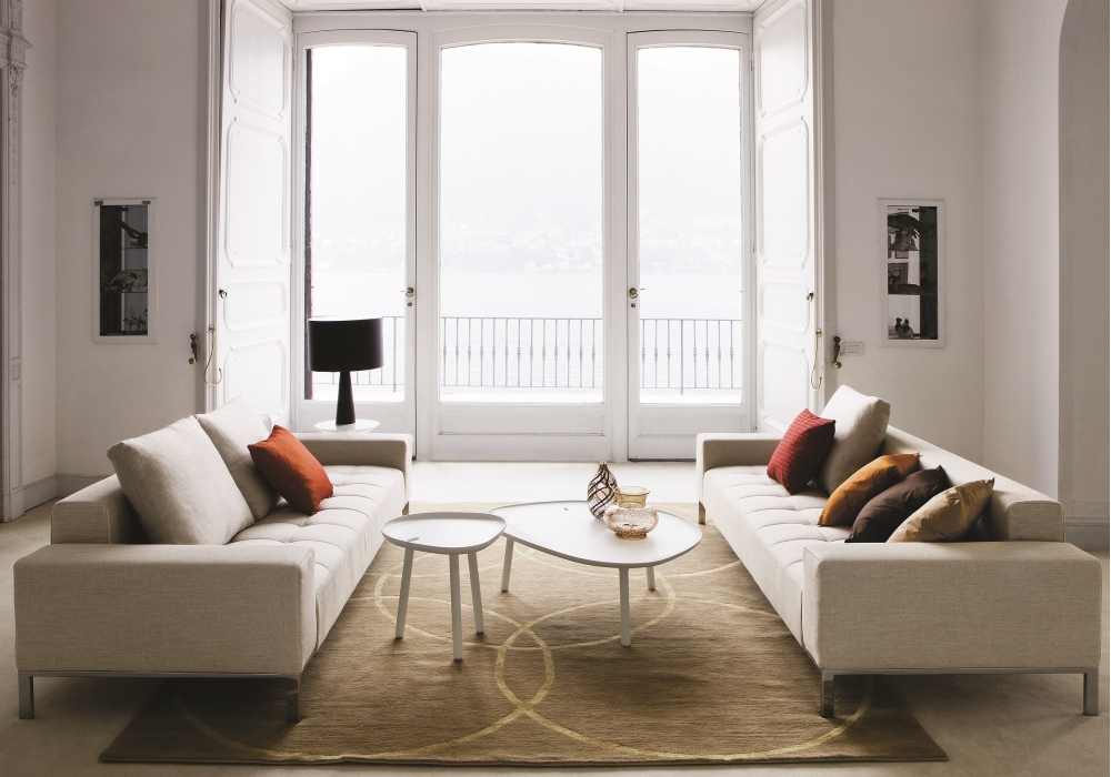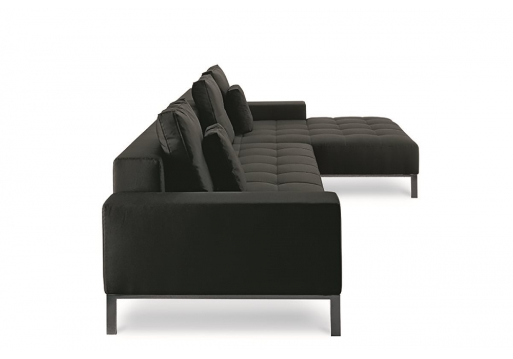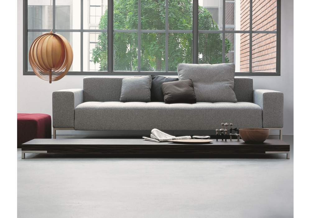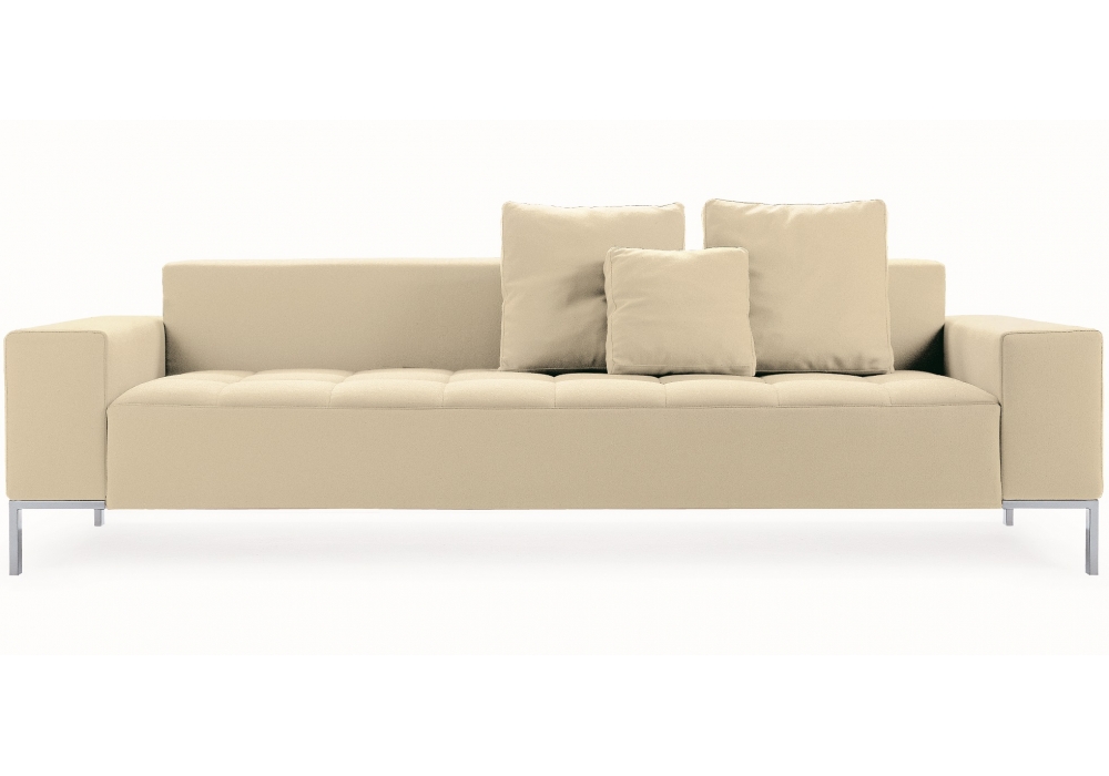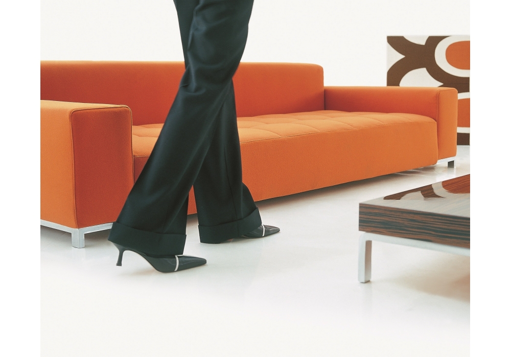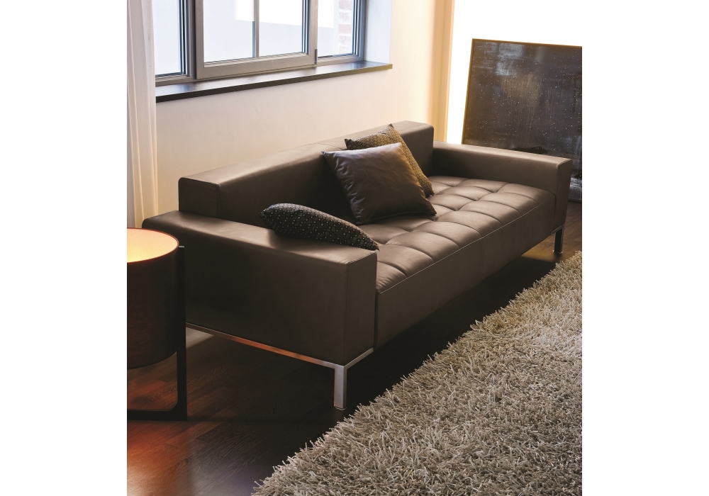 1326 Alfa von Emaf Progetti für Zanotta entworfen, ist ein Sofa mit Stahlgestell, Bezug mit gestepptem Sitzkissen, abnehmbar in Stoff oder Leder. Füße aus verchromtem oder vernickeltem Stahl in Natur oder Schwarz oder in Graphit lackiert. In verschiedenen Abmessungen erhältlich.