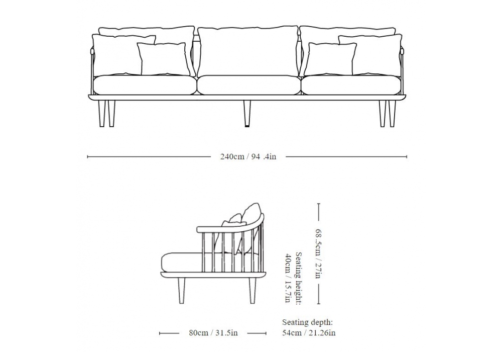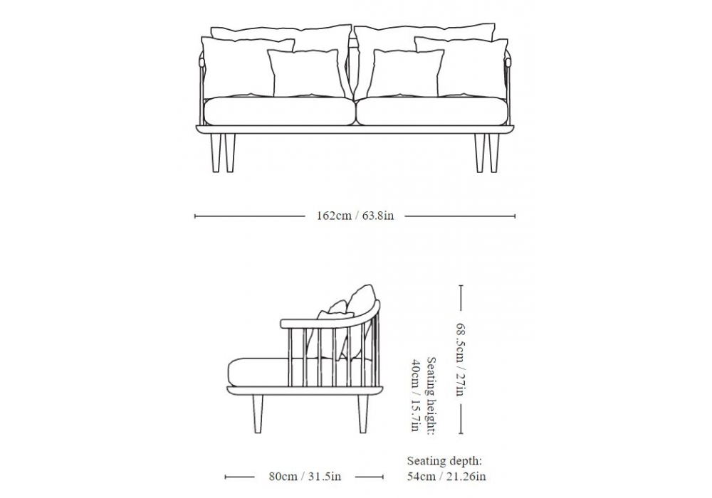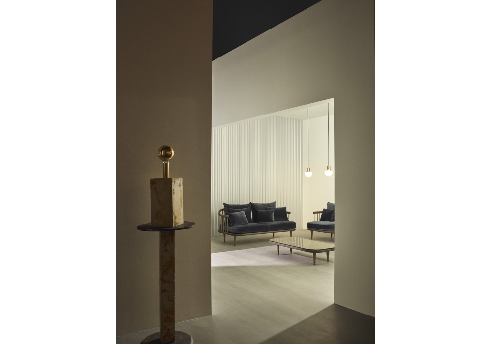 Fly von Space Copenhagen für &Tradition entworfen, ist ein Sofa mit Struktur und Untergestell aus geölter Eiche. Kissen aus HR-Schaum und Federn. Stoffpolsterung. Verfügbar in mehreren Ausführungen und Modellen.