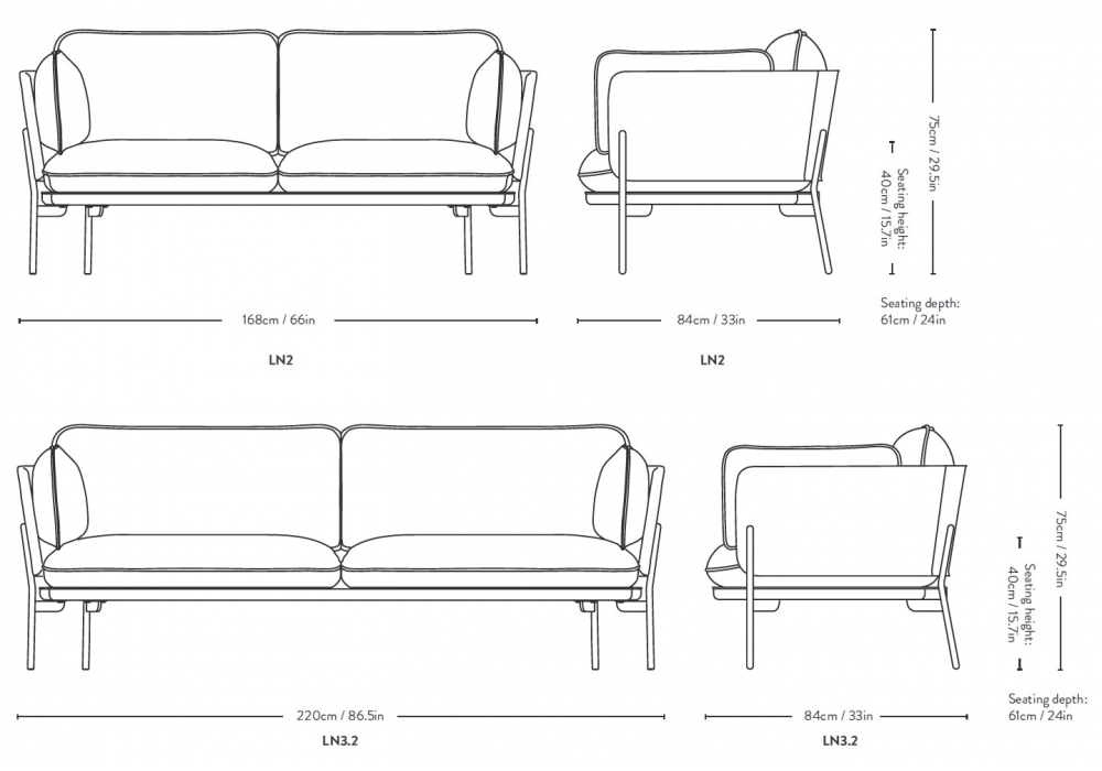 Cloud von Luca Nichetto für &Tradition entworfen, ist ein Sofa mit Untergestell aus Sperrholz, Massivholz und Stahl mit No-Zag-Federn. HR-Schaum, Polyesterfasern und Daunenkissen. Massive Stahlbeine. Bezug aus Stoff oder Leder.
