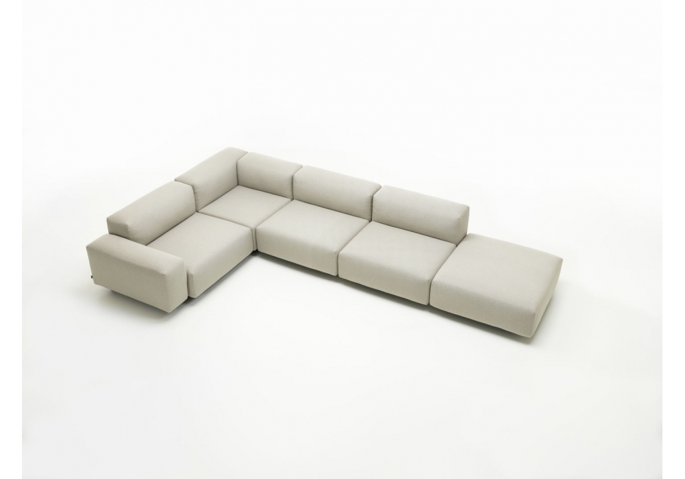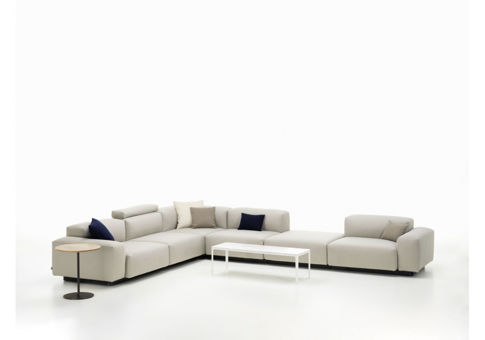 Soft Modular Sofa, von Jasper Morrison für Vitra entworfen, ist realisiert mit Stahlrahmen, Holzbau mit Stahlfedern, Polyurethan-Schaumstoffstruktur und Visco-Abdeckung. Mit sorgfältig ausgewogenen Proportionen, großem Komfort und einem bewussten Verzicht auf dekorative Details vereint dieses Sofa die Eigenschaften eines modularen Lounge-Sofa in seiner reinsten Form. Verfügbar in mehreren Ausführungen.