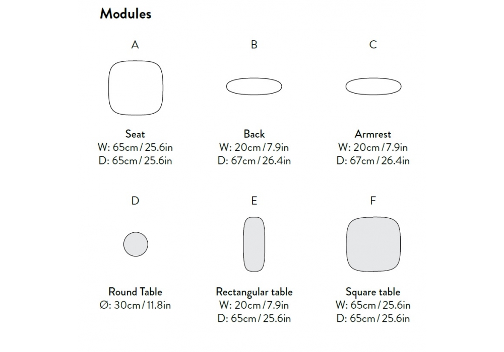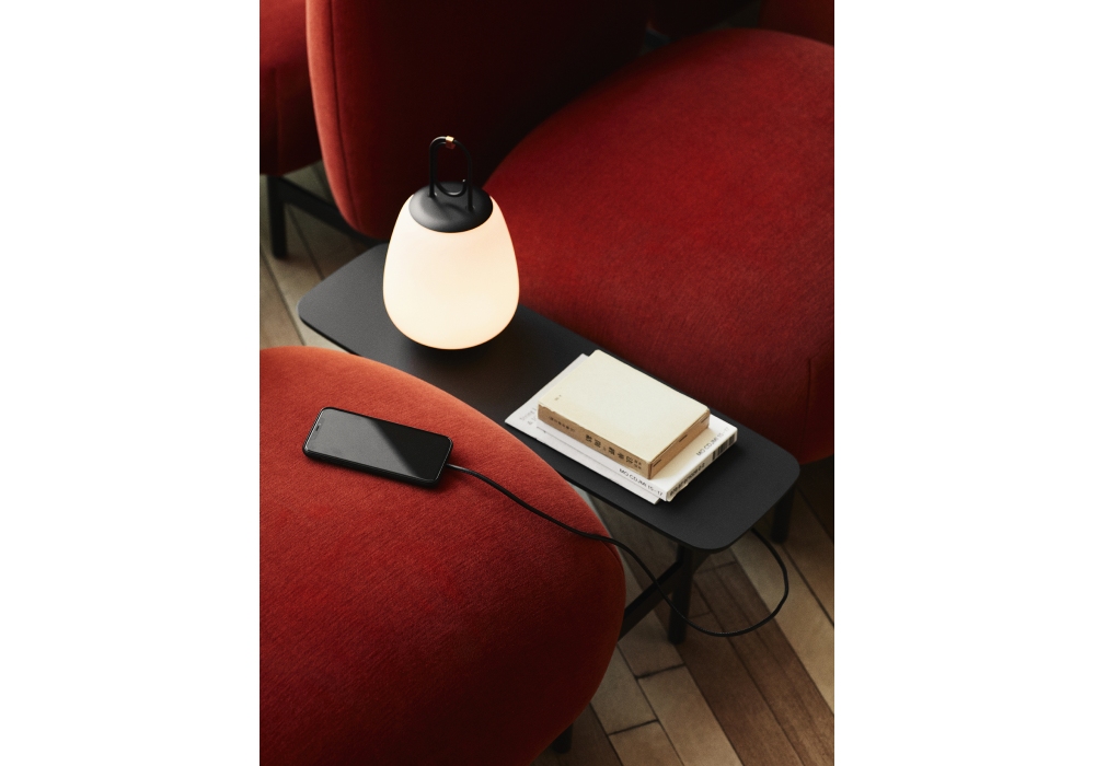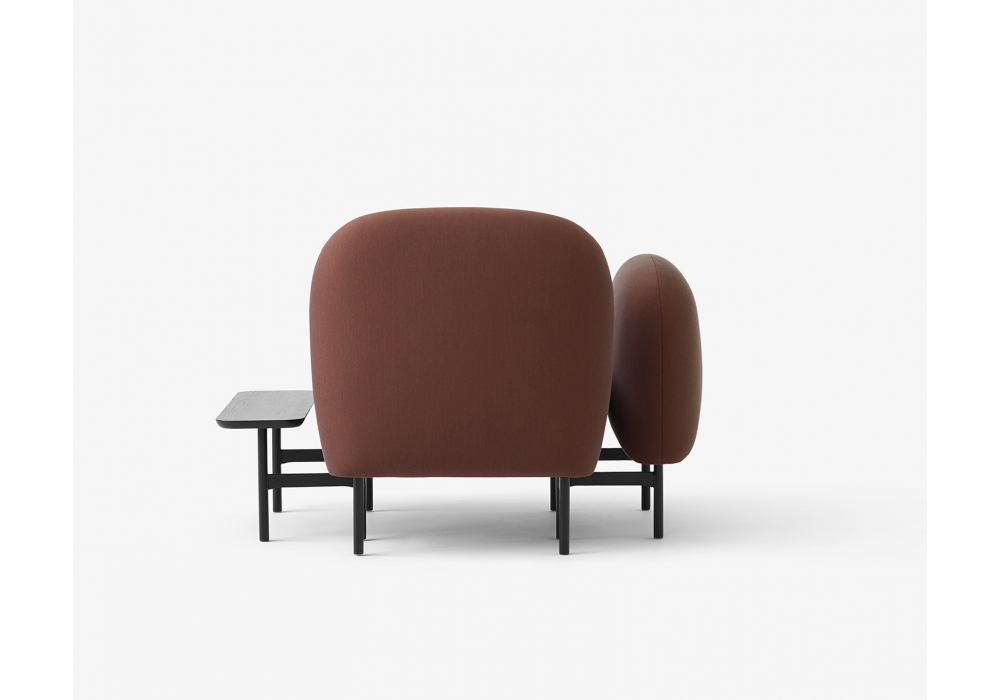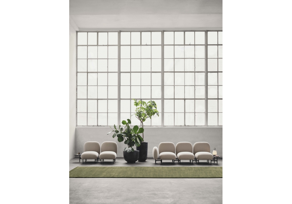 Isole von Nendo & Luca Nichetto für &Tradition entworfen, ist ein modulares Sitzsystem mit einer pulverbeschichteten Stahlbasis, Sitz, Rückenlehne und Armlehnen aus geformtem HR-Schaum. Tischplatten aus schwarzem MDF mit Nanolaminatoberfläche. Der Bezug besteht aus Stretchstoffen, die sowohl für den Wohnbereich als auch für den Objektbereich geeignet sind.