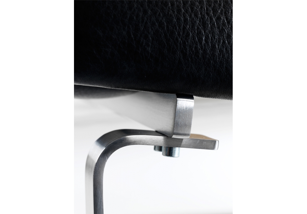 CH102 von Hans J. Wegner für Carl Hansen & Søn entworfen, ist ein Sofa mit Struktur und Vorderseite der Armlehnen aus Edelstahl. Sitz, Kissen, Rücken und Armlehnen komplett mit Leder bezogen.