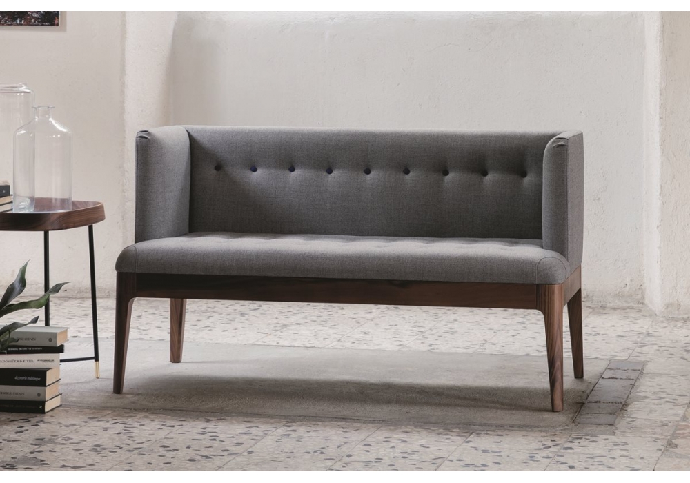 Wendy Sofa, von C. Ballabio für Porada entworfen, ist ein Sofa Zweisitzer-Sessel mit Gestell aus massivem Nussbaum Canaletta verfügbar in verschiedenen Ausführungen. Sitz mit Capitonné-Dekor mit Stoff oder Leder.