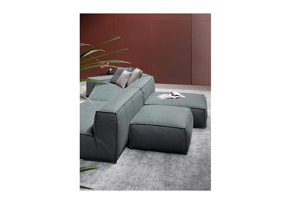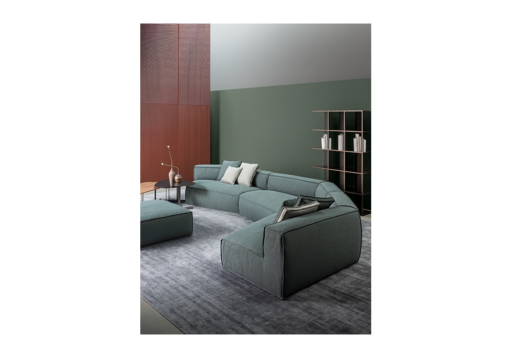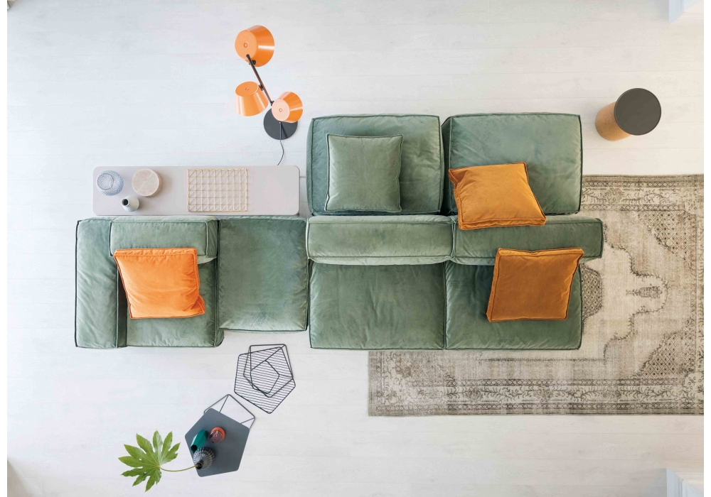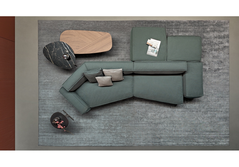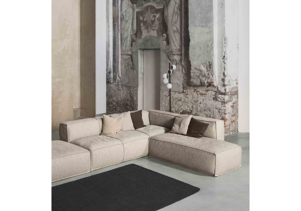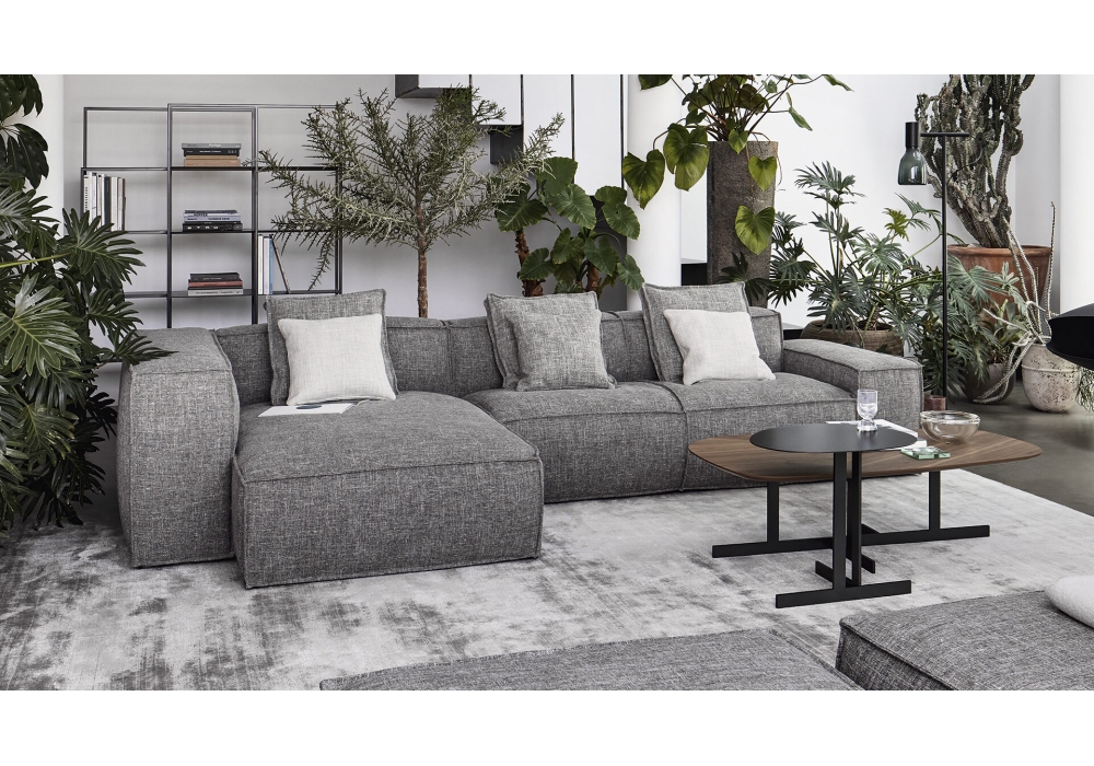 Peanut B von Mauro Lipparini für Bonaldo entworfen, ist ein modulares Sofa mit vollständig abnehmbarem Stoffbezug in verschiedenen Ausführungen. Die Füße sind aus anthrazitgrau lackiertem Holz. Erhältlich in verschiedenen Zusammensetzungen.