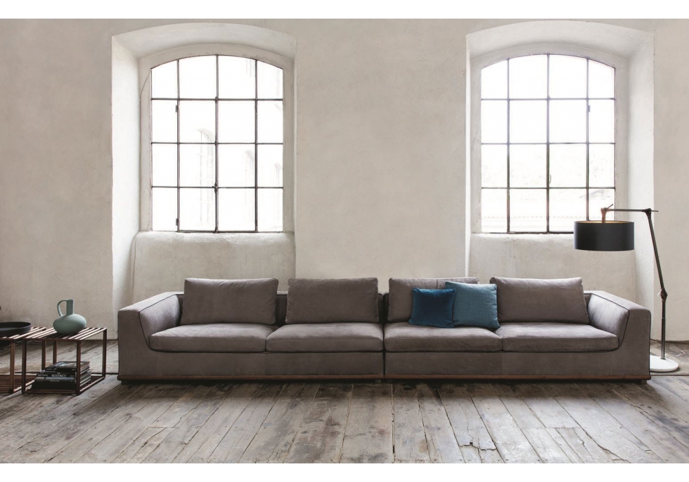 Kirk, von Carlo Ballabio für Porada entworfen, ist ein Sofa mit Struktur in Canaletta Nussbaum in drei verschiedenen Ausführungen. Füßen aus zinngrauem Metall. Paspelierung in verschiedenen Ausführungen und Bezug aus Stoff oder Leder. Verfügbar in verschiedenen modellen.