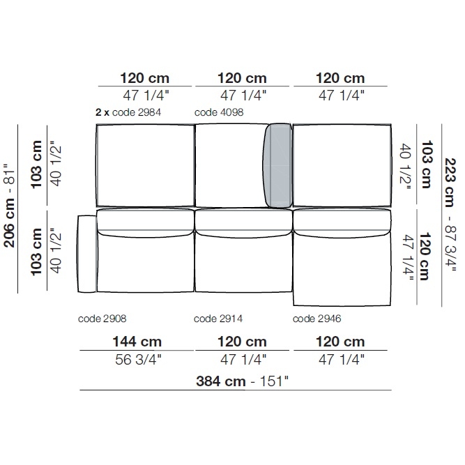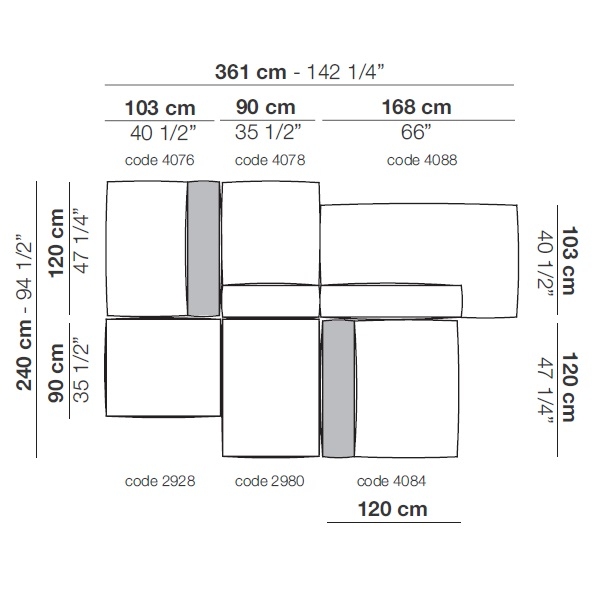 Marechiaro von Arflex entworfen, ist ein modulares Sofa mit Überzug aus Stoff oder Leder. Füße aus Metall, Schwarz lackiert und Schutzgleiter aus schwarzem Nylon. Sitzenkissenpolsterung: Geformter Pu-Schaum in Unterschiedlicher Dichte / Faserbezug.